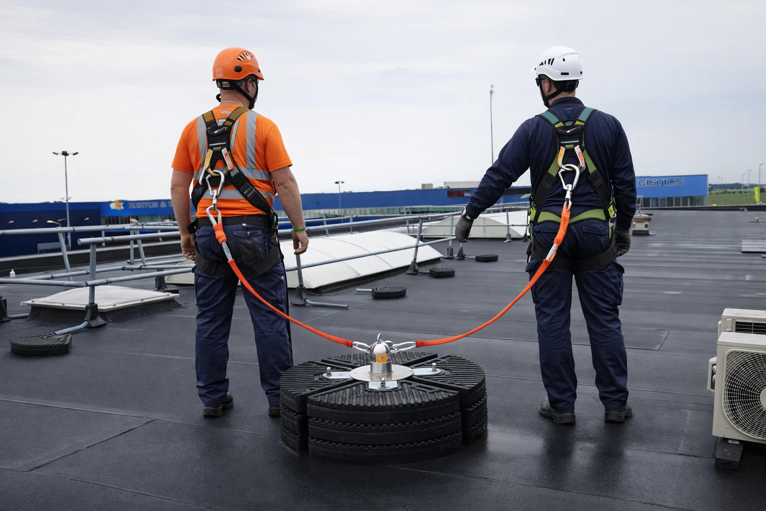 Sicher arbeiten mit zertifiziertem Dachschutzsystem – werkzeugfrei & dual use Zertifizierte Absturzsicherung für Flachdächer nach ...
