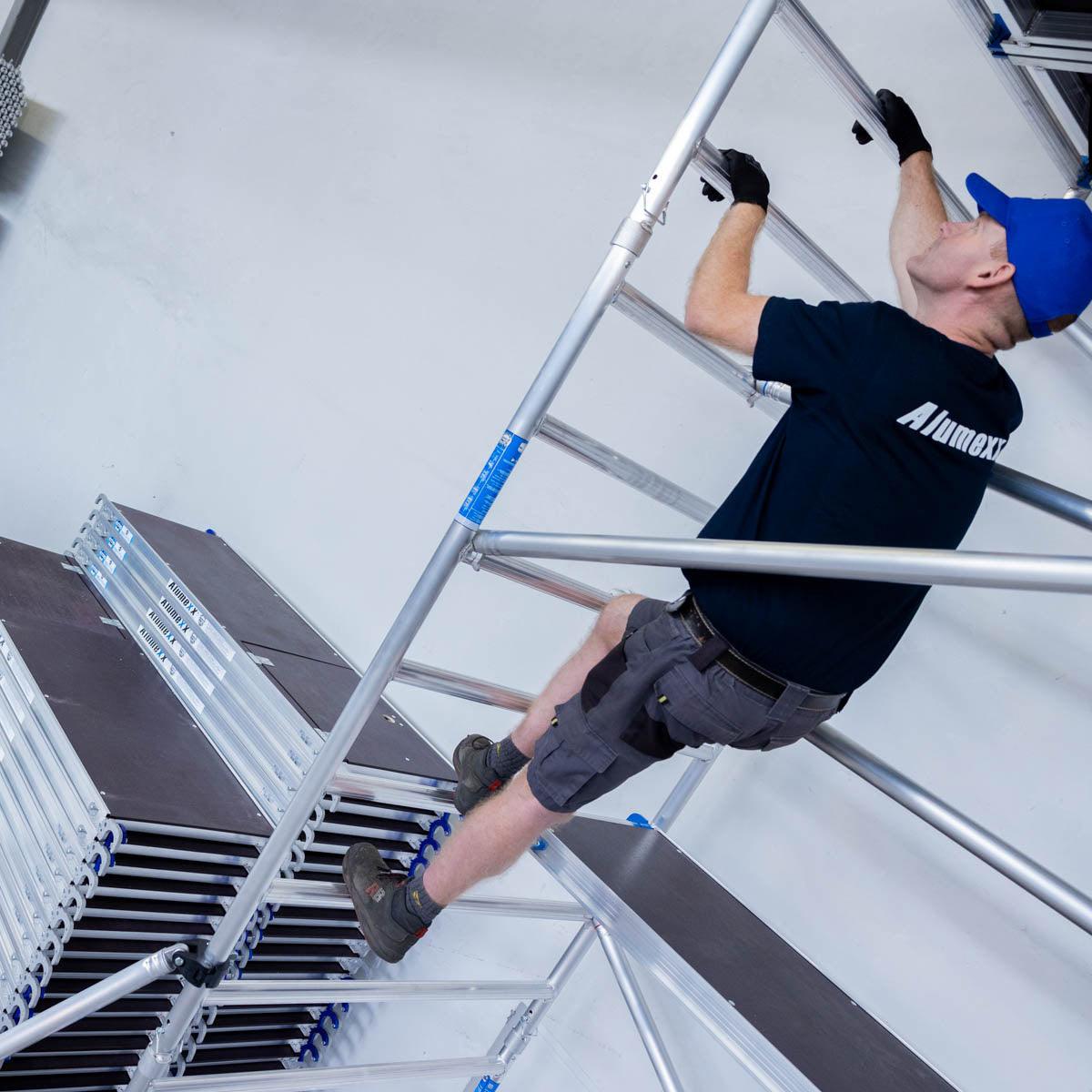 Unsere Gerüste und viele unserer anderen Produkte bestehen in der Regel aus hochwertigem Aluminium, was sie leicht, stabil und korrosionsbeständig macht.