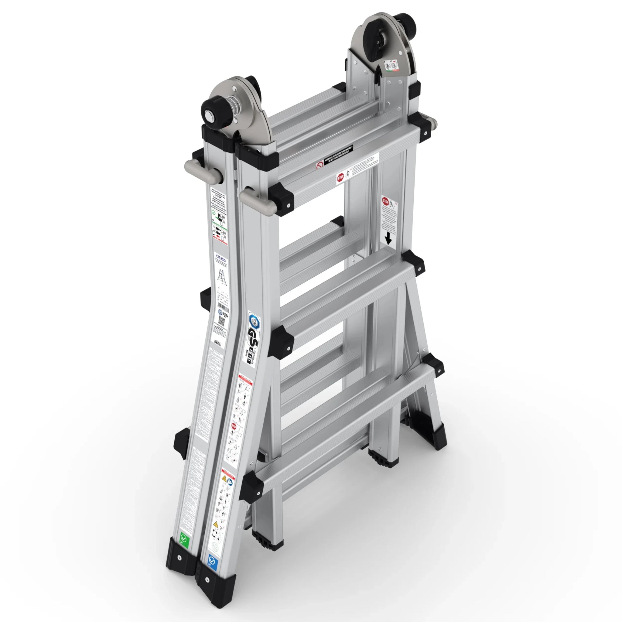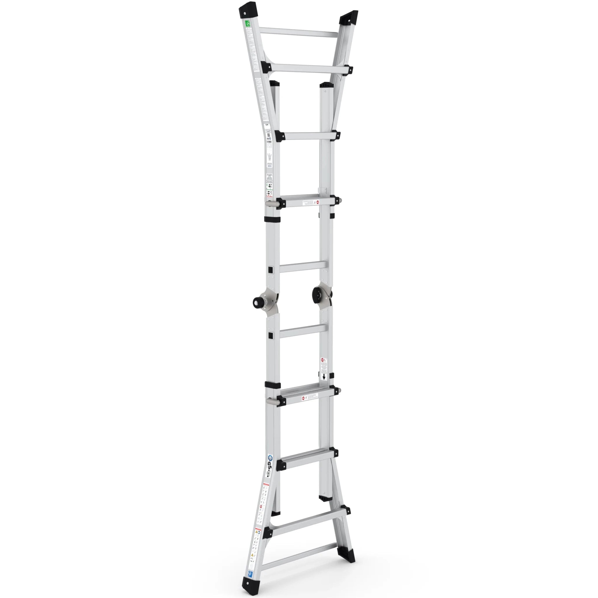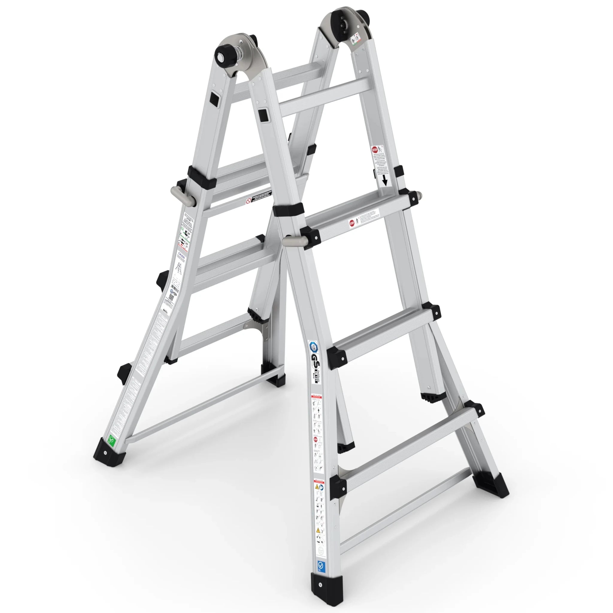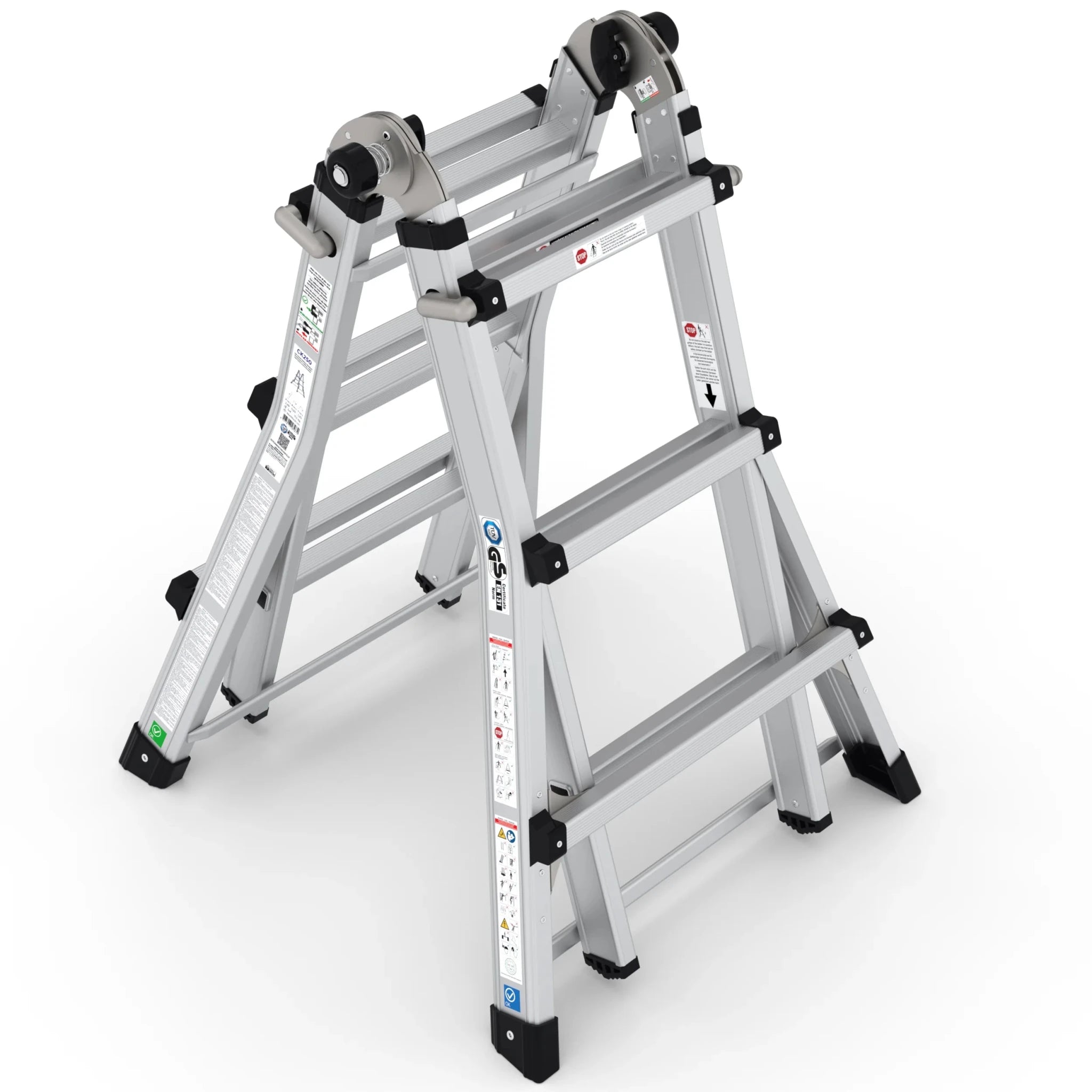 Die multifunktionale Klappleiter bietet beispiellose Flexibilität für verschiedene Aufgaben. Durch zusätzliche horizontale Querverbindungen ist diese Leiter noch stabiler und somit ideal für den intensiven Einsatz geeignet.