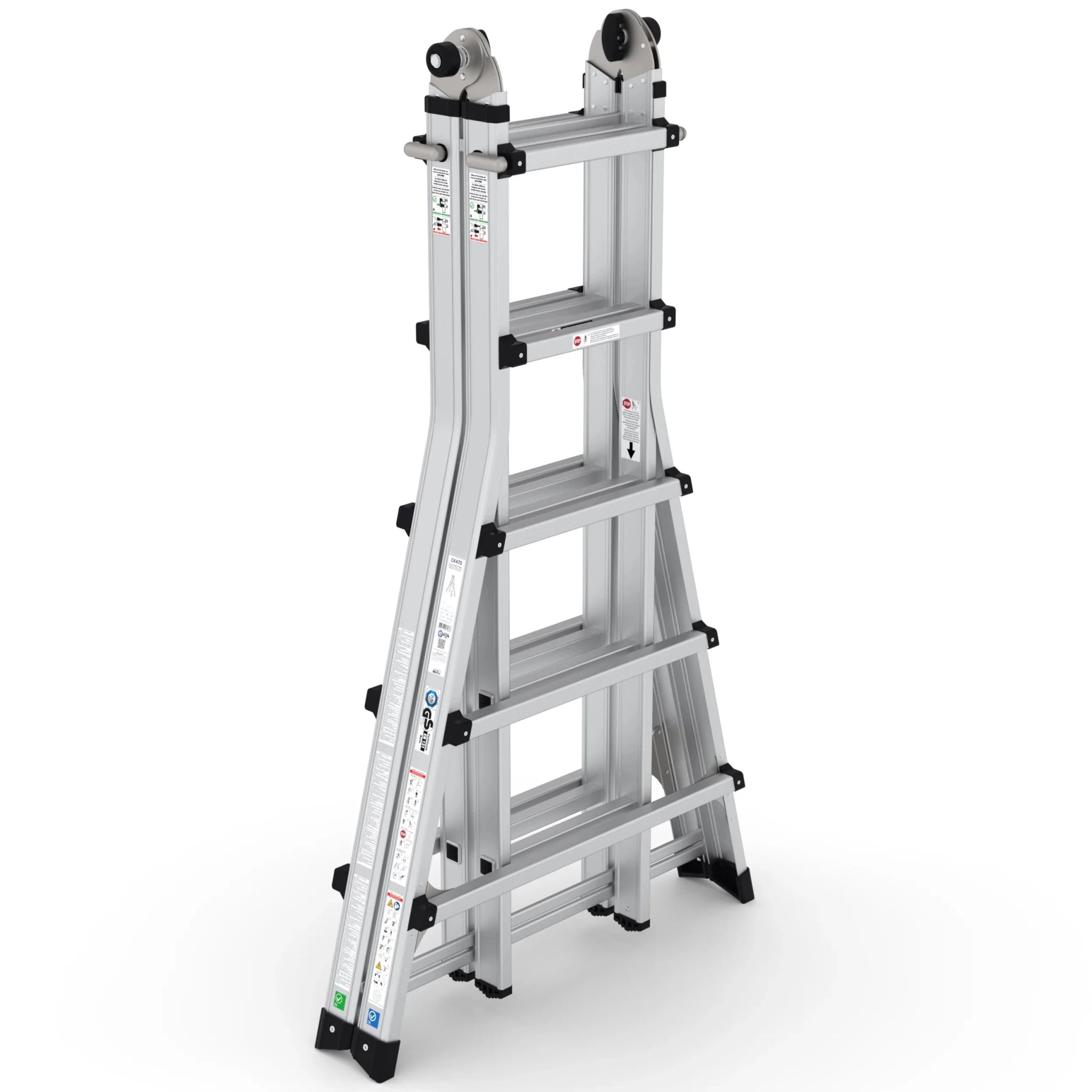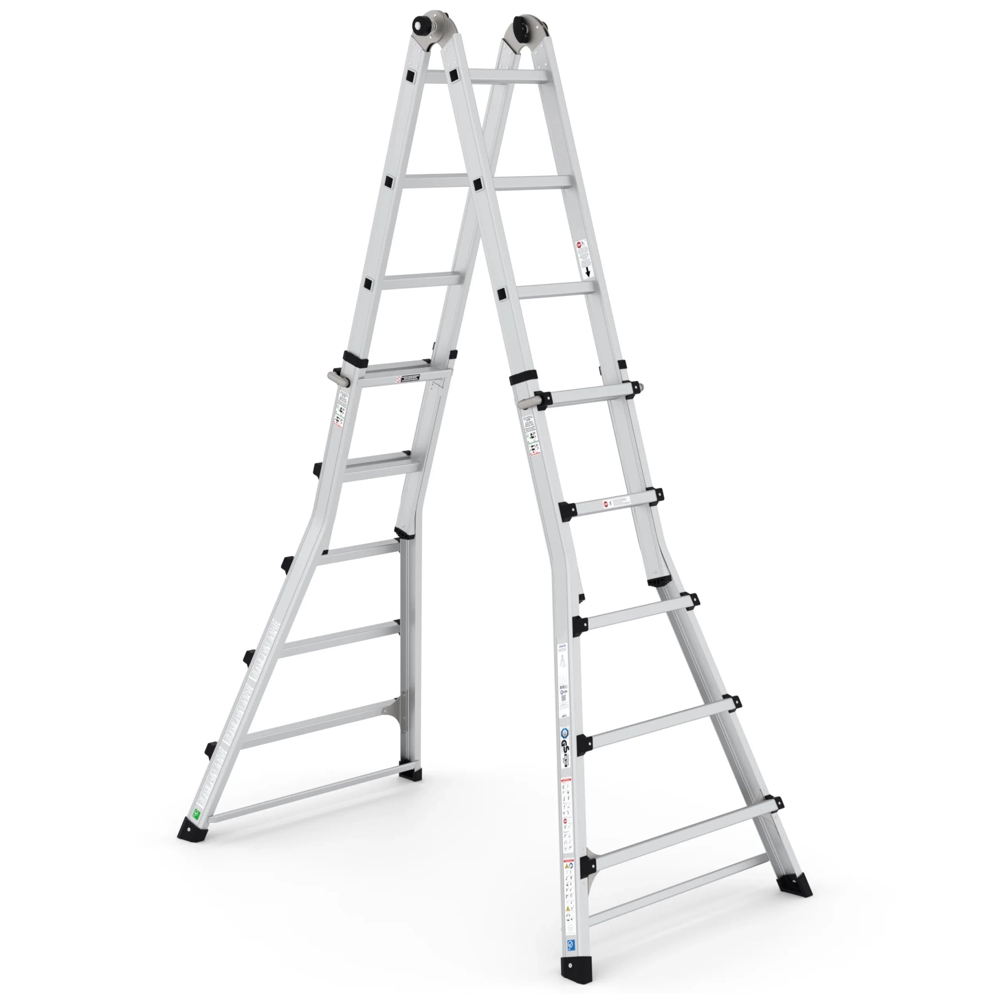 Die multifunktionale Klappleiter bietet beispiellose Flexibilität für verschiedene Aufgaben. Durch zusätzliche horizontale Querverbindungen ist diese Leiter noch stabiler und somit ideal für den intensiven Einsatz geeignet.