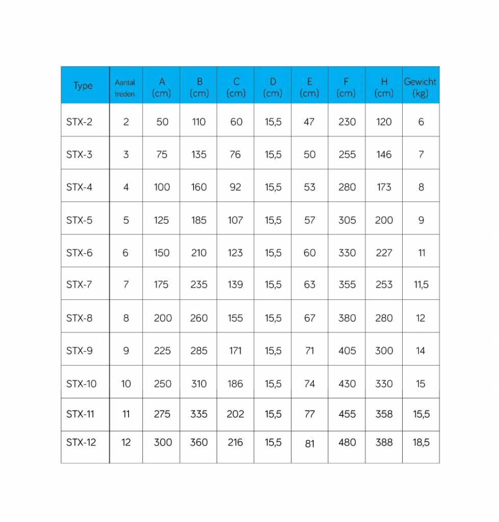 Diese einläufige Treppe mit 12 Stufen ist leicht und mit einer praktischen Werkzeugkiste ausgestattet. Die Treppen erfüllen die strengsten Anforderungen und sind für den intensiven professionellen Gebrauch geeignet.