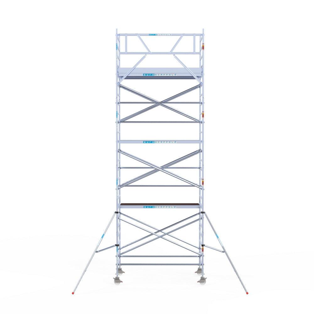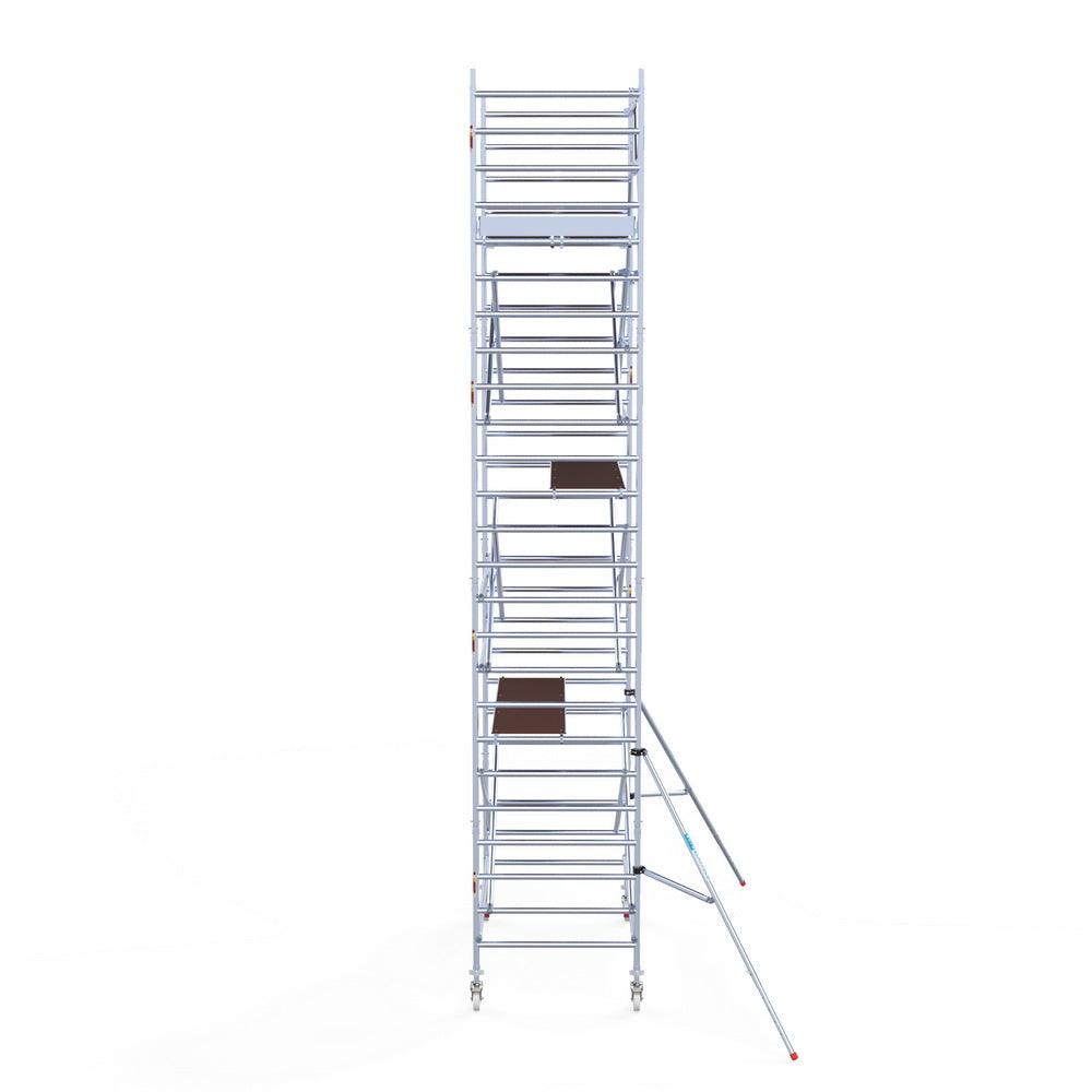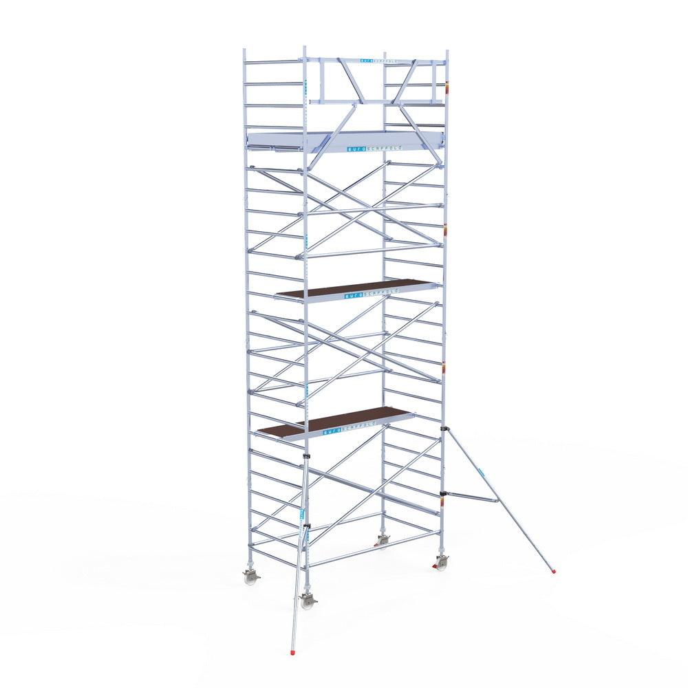 Unsere Rollgerüste sind in verschiedenen Breiten erhältlich, typischerweise 75 cm, 90 cm und 135 cm, abhängig vom jeweiligen Modell und der Produktlinie (semi-professionell oder professionell). Die 75 cm Breite ist ideal für beengte Räume, während 135 cm maximale Arbeitsfläche bietet.