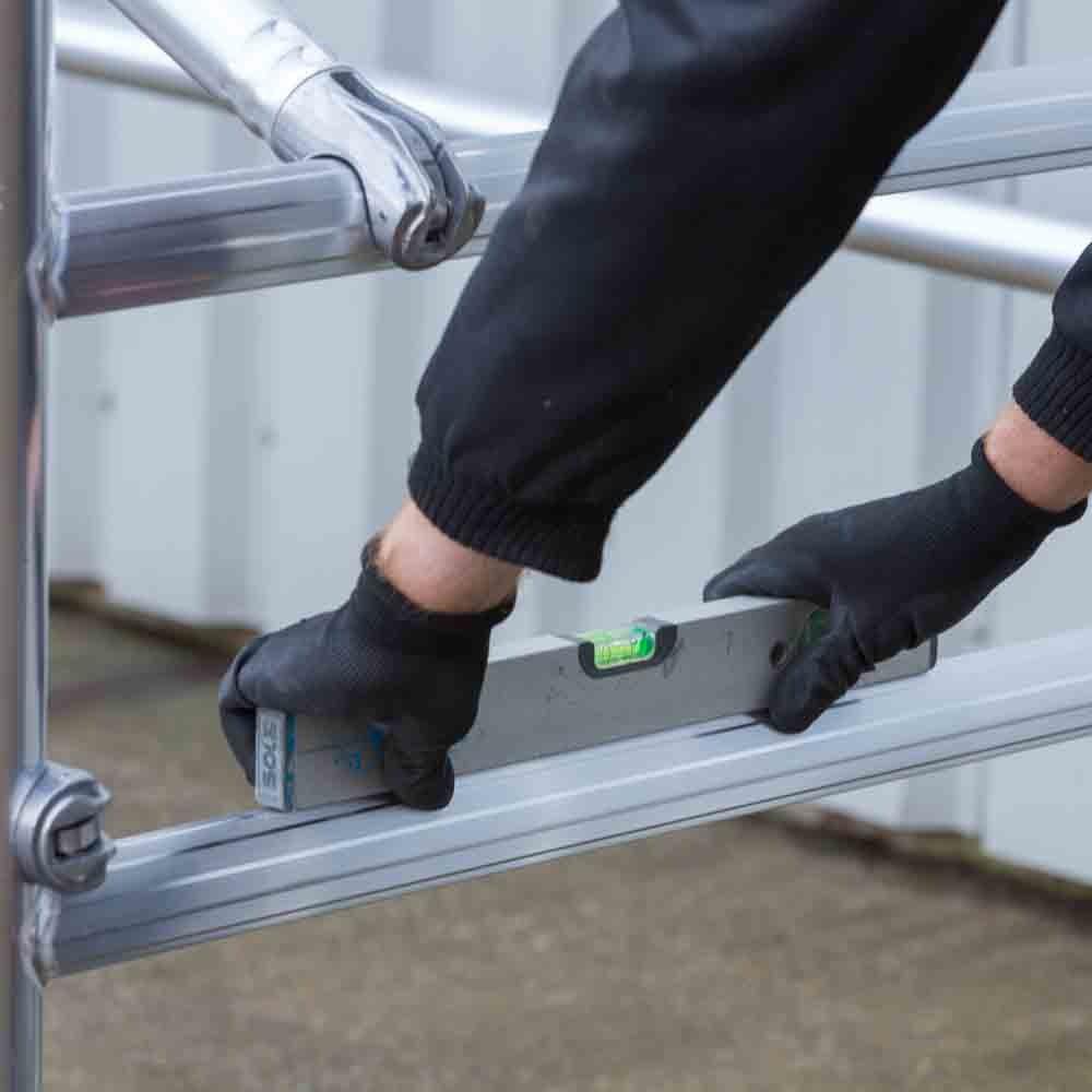 Unsere Gerüste und viele unserer anderen Produkte bestehen in der Regel aus hochwertigem Aluminium, was sie leicht, stabil und korrosionsbeständig macht.