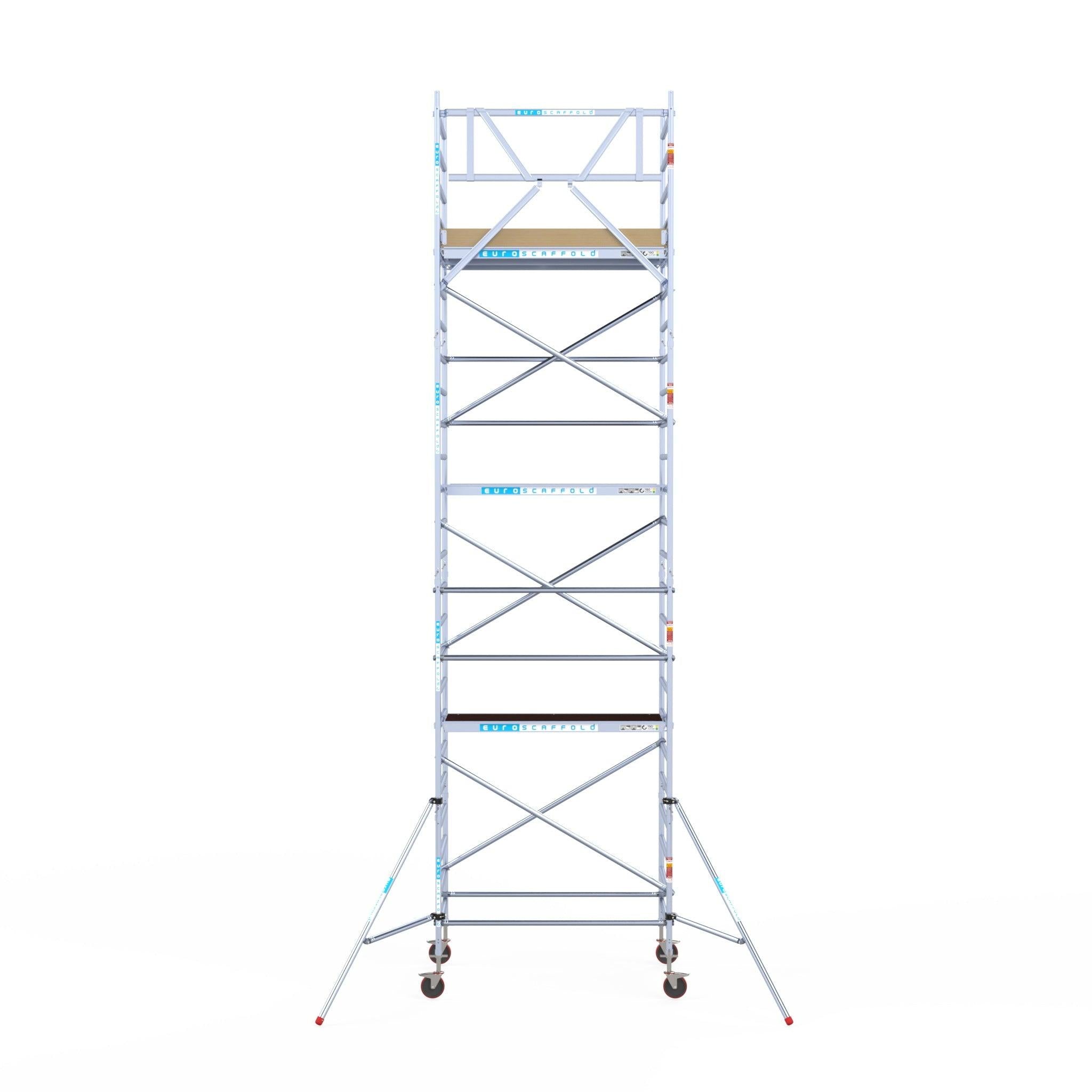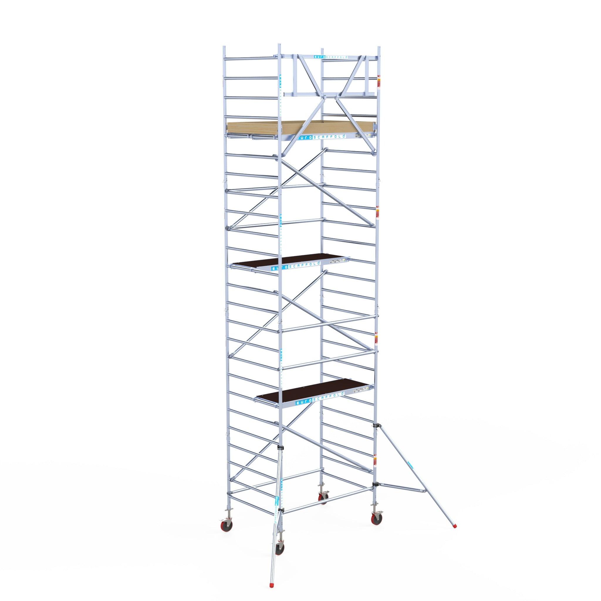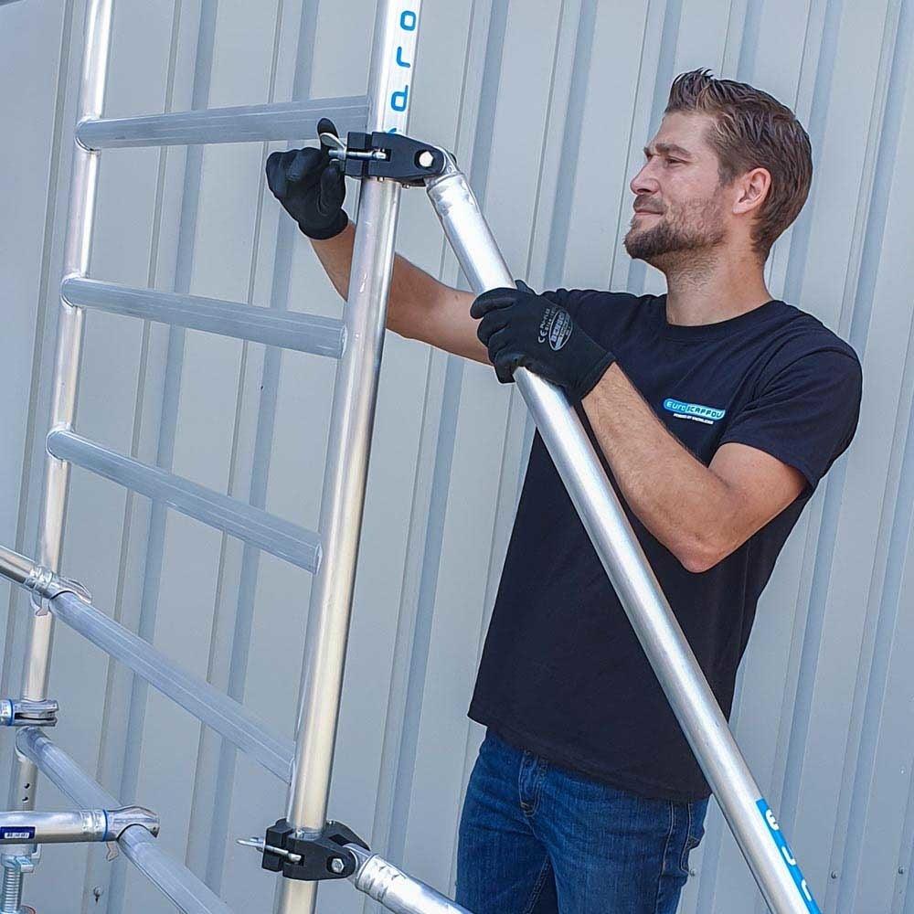 Rollgerüst Euroscaffold Basic 135x190 8,2m Arbeitshöhe Carbonplattform gegen Fassade
