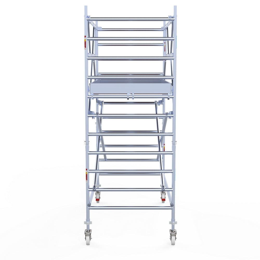 Unsere Rollgerüste sind in verschiedenen Breiten erhältlich, typischerweise 75 cm, 90 cm und 135 cm, abhängig vom jeweiligen Modell und der Produktlinie (semi-professionell oder professionell). Die 75 cm Breite ist ideal für beengte Räume, während 135 cm maximale Arbeitsfläche bietet.