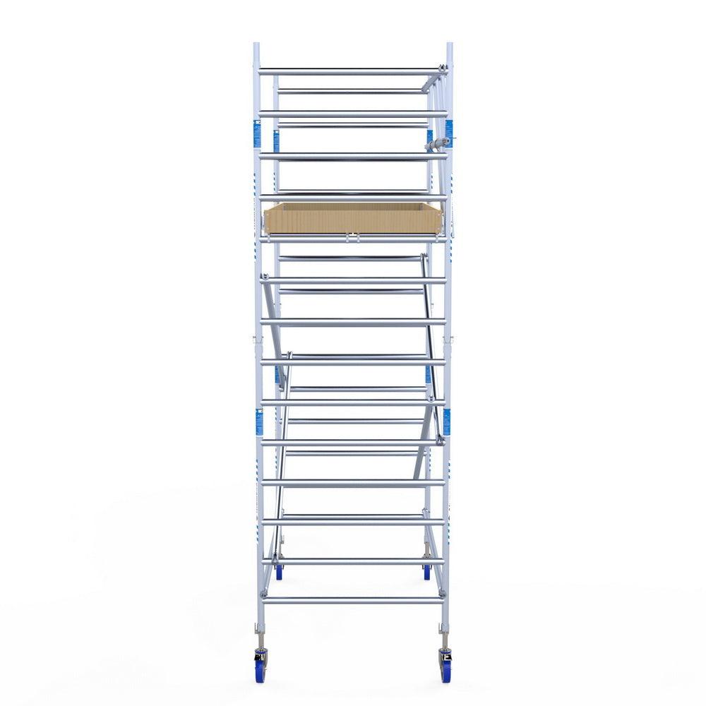 Unsere Rollgerüste sind in verschiedenen Breiten erhältlich, typischerweise 75 cm, 90 cm und 135 cm, abhängig vom jeweiligen Modell und der Produktlinie (semi-professionell oder professionell). Die 75 cm Breite ist ideal für beengte Räume, während 135 cm maximale Arbeitsfläche bietet.