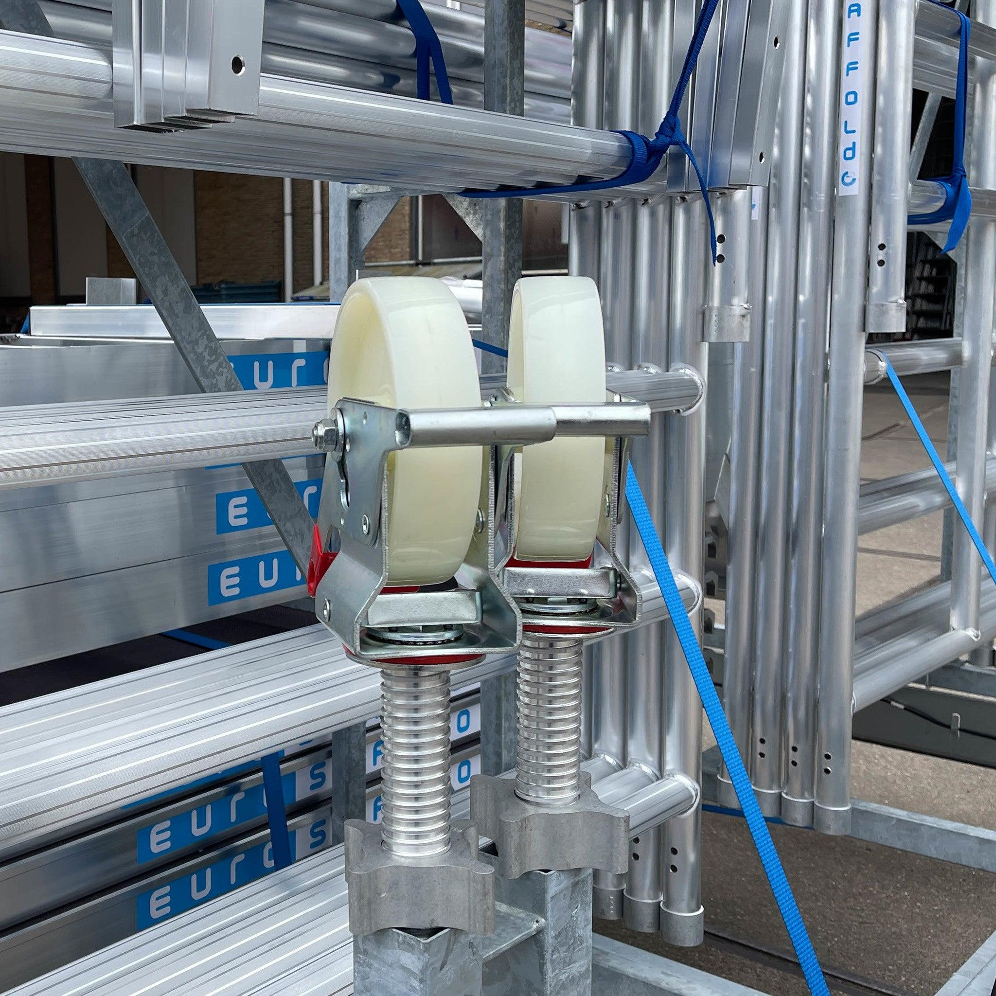 Unser Sortiment an Gerüstzubehör umfasst alles, was Sie für den sicheren Aufbau und die Anpassung Ihrer Gerüste benötigen, wie z.B. Rollen, Standfüße, Ausleger, Geländer, Diagonalen, Vertikalrahmen, Beläge, Kupplungen und vieles mehr.