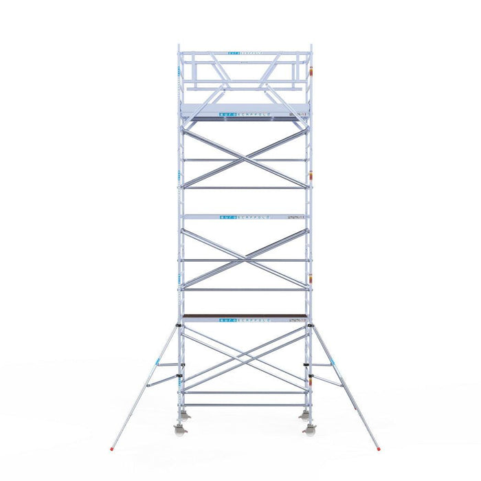 Unsere Rollgerüste sind in verschiedenen Breiten erhältlich, typischerweise 75 cm, 90 cm und 135 cm, abhängig vom jeweiligen Modell und der Produktlinie (semi-professionell oder professionell). Die 75 cm Breite ist ideal für beengte Räume, während 135 cm maximale Arbeitsfläche bietet.