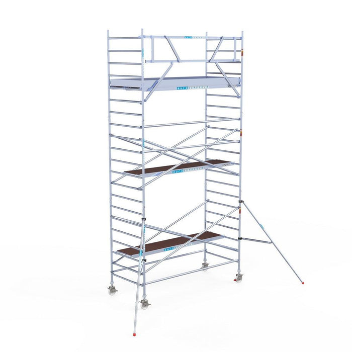 Rolling scaffold Euro scaffolding Original 135x305 7.2m working height carbon platform against facade