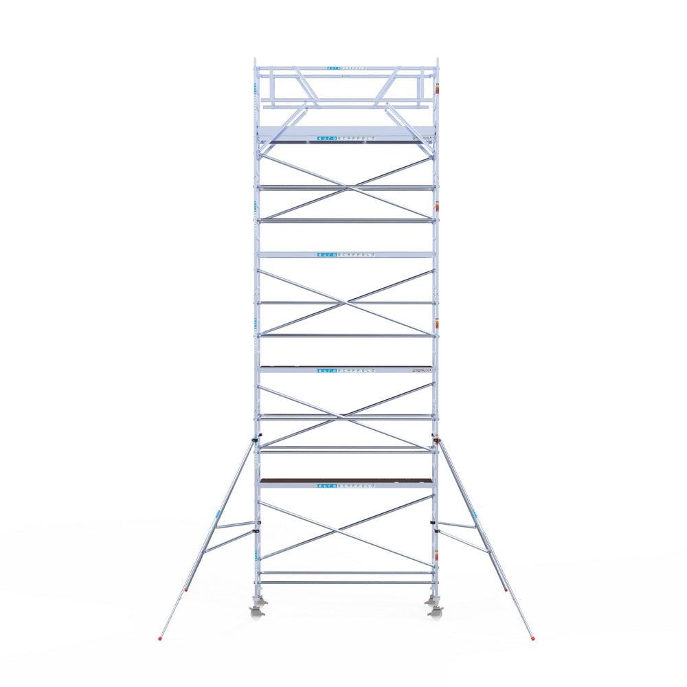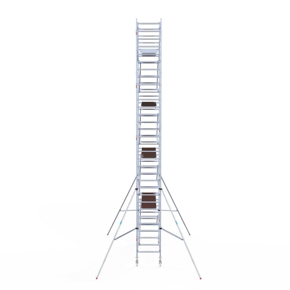 Unsere Rollgerüste sind in verschiedenen Breiten erhältlich, typischerweise 75 cm, 90 cm und 135 cm, abhängig vom jeweiligen Modell und der Produktlinie (semi-professionell oder professionell). Die 75 cm Breite ist ideal für beengte Räume, während 135 cm maximale Arbeitsfläche bietet.