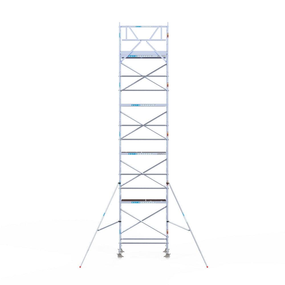 Unsere Rollgerüste sind in verschiedenen Breiten erhältlich, typischerweise 75 cm, 90 cm und 135 cm, abhängig vom jeweiligen Modell und der Produktlinie (semi-professionell oder professionell). Die 75 cm Breite ist ideal für beengte Räume, während 135 cm maximale Arbeitsfläche bietet.