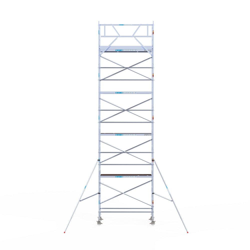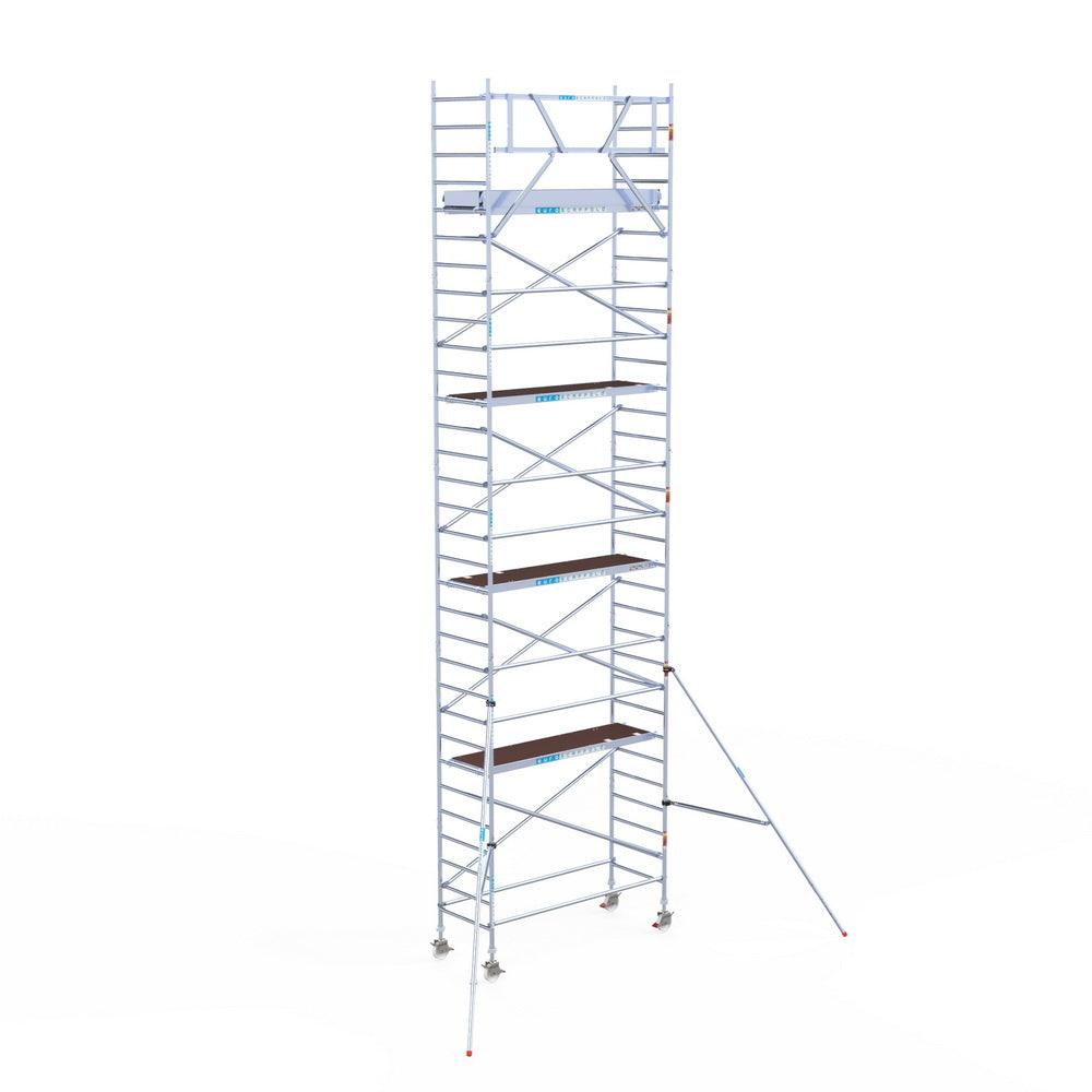 Unsere Rollgerüste sind in verschiedenen Breiten erhältlich, typischerweise 75 cm, 90 cm und 135 cm, abhängig vom jeweiligen Modell und der Produktlinie (semi-professionell oder professionell). Die 75 cm Breite ist ideal für beengte Räume, während 135 cm maximale Arbeitsfläche bietet.