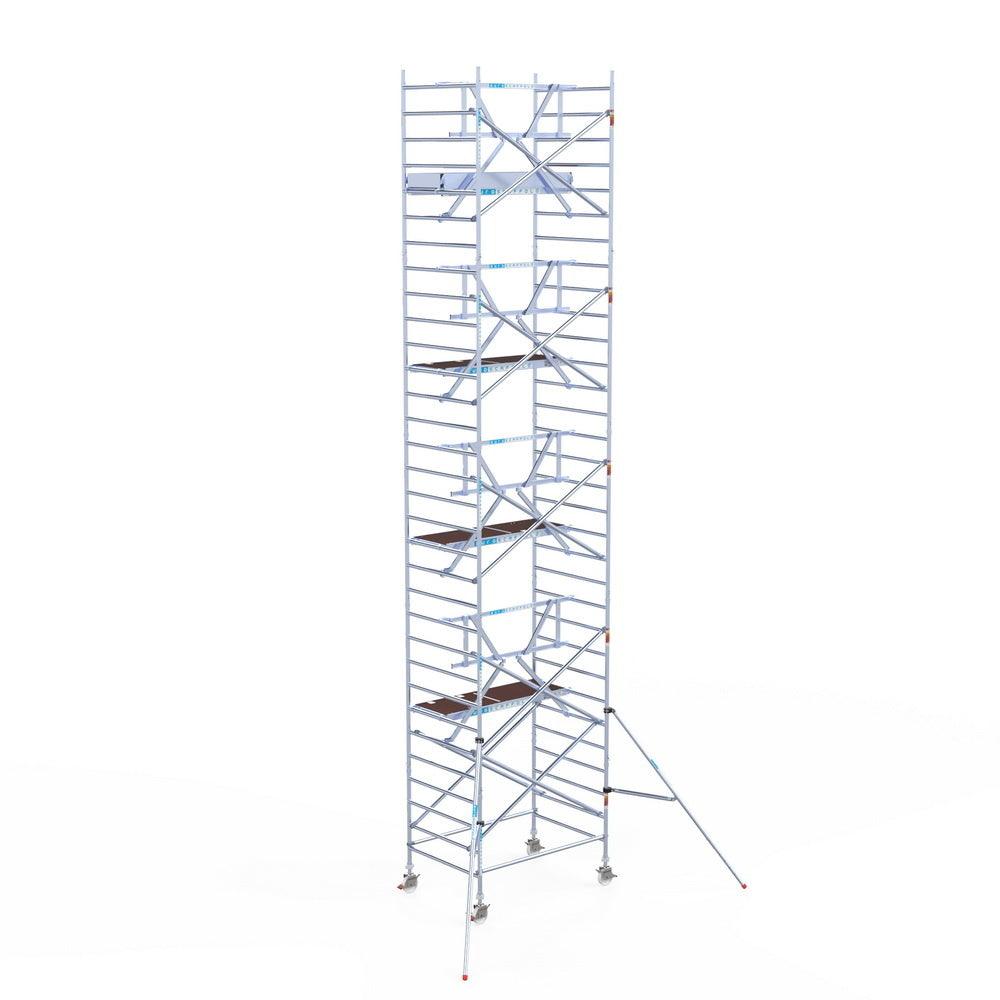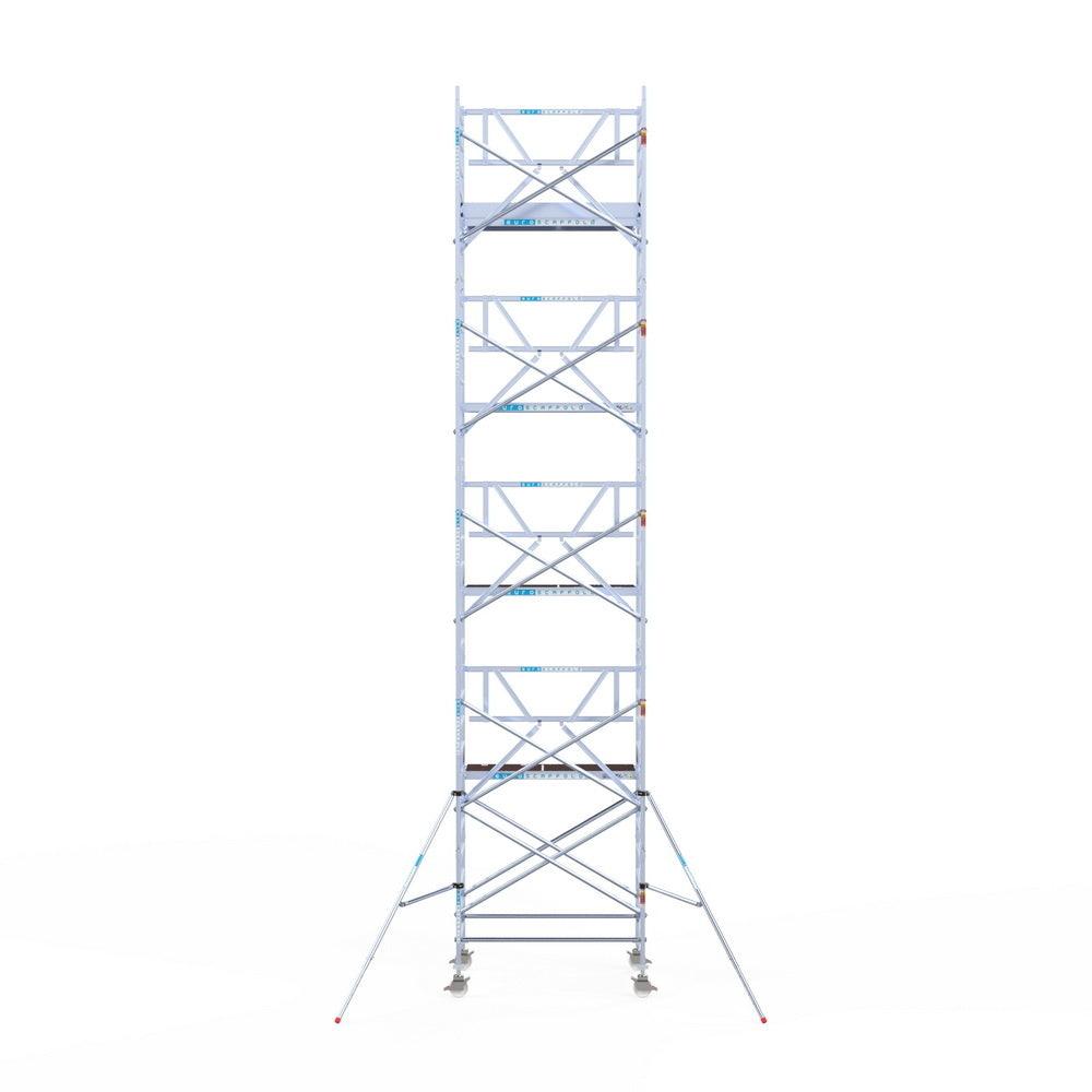 Rolling scaffold Euroscaffold Professional 135x190 10.2m working height carbon platform against facade