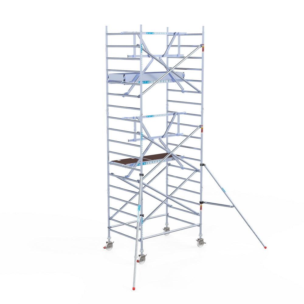 Rolling scaffold Euroscaffold Professional 135x190 6.2m working height Carbon platform against facade