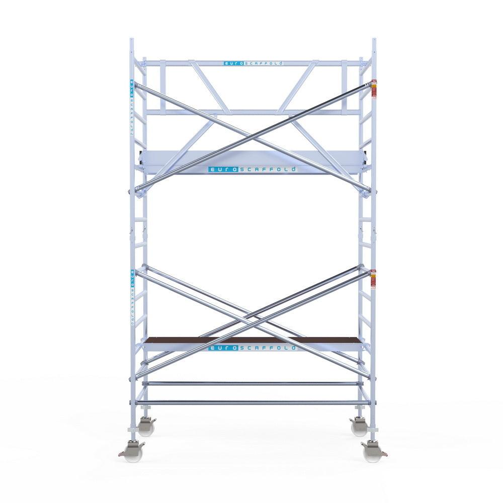 Rolling scaffold Euroscaffold Professional 135x250 5.2m working height Carbon platform against facade