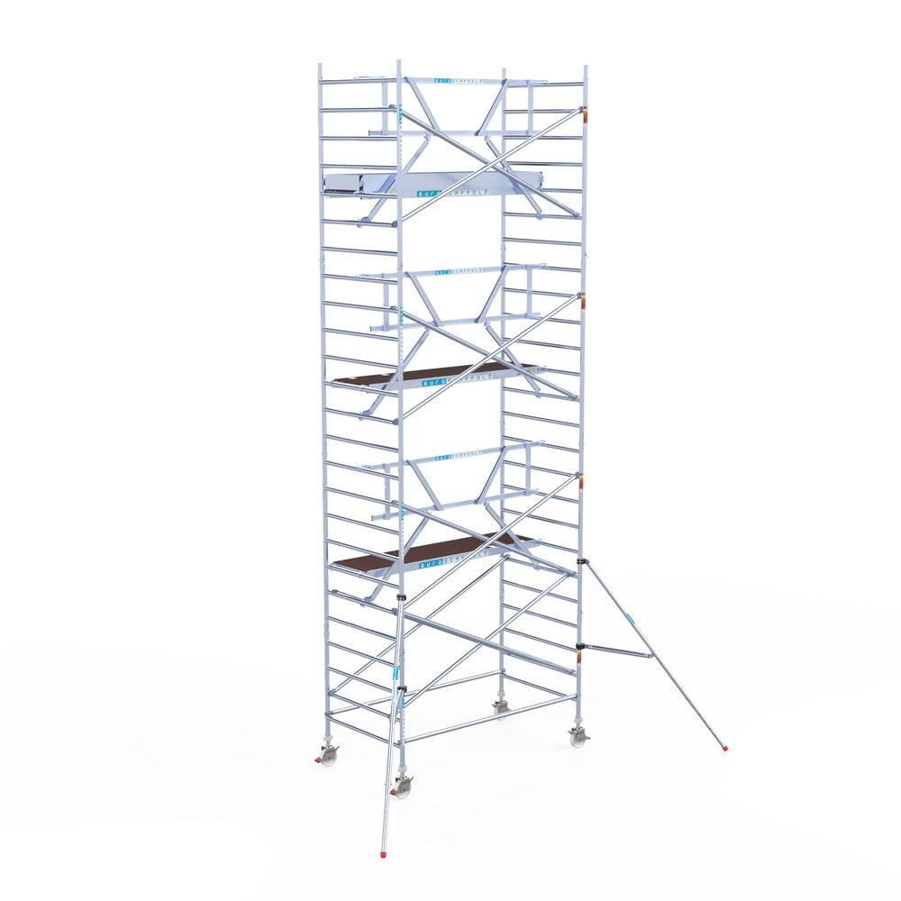 Rolling scaffold Euroscaffold Professional 135x250 8.2m working height Carbon platform against facade