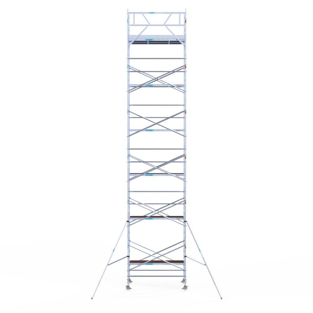Unsere Rollgerüste sind in verschiedenen Breiten erhältlich, typischerweise 75 cm, 90 cm und 135 cm, abhängig vom jeweiligen Modell und der Produktlinie (semi-professionell oder professionell). Die 75 cm Breite ist ideal für beengte Räume, während 135 cm maximale Arbeitsfläche bietet.