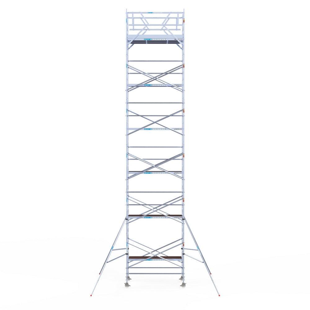 Unsere Rollgerüste sind in verschiedenen Breiten erhältlich, typischerweise 75 cm, 90 cm und 135 cm, abhängig vom jeweiligen Modell und der Produktlinie (semi-professionell oder professionell). Die 75 cm Breite ist ideal für beengte Räume, während 135 cm maximale Arbeitsfläche bietet.