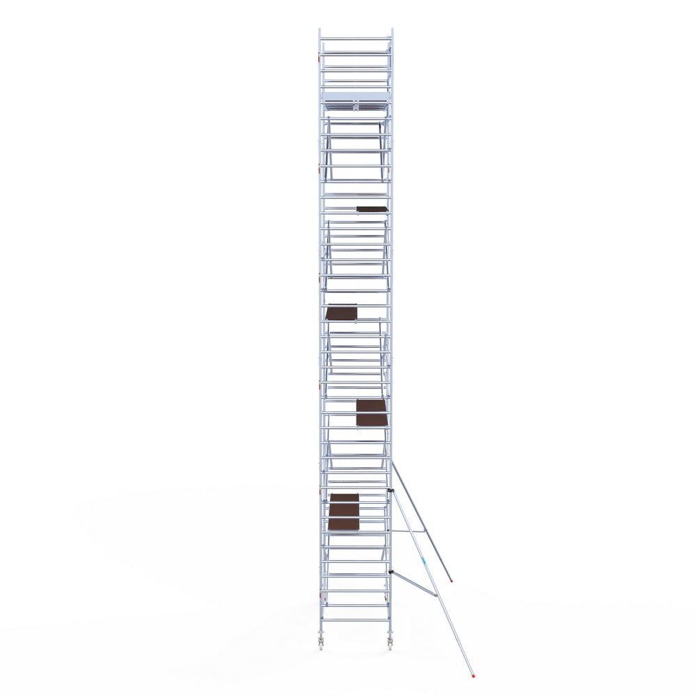 Rolling scaffold Euro scaffolding Original 135x305 12.2m working height carbon platform against facade