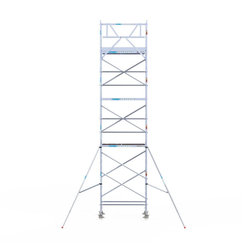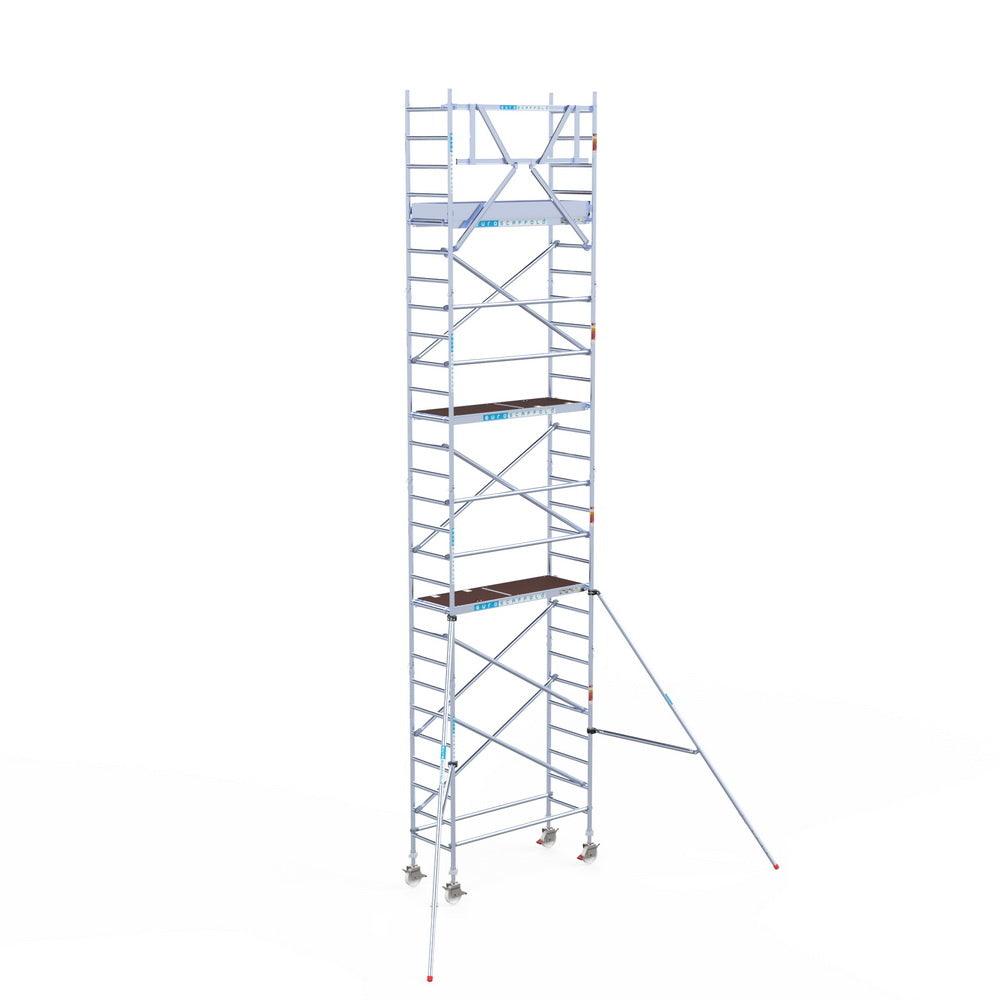 Unsere Rollgerüste sind in verschiedenen Breiten erhältlich, typischerweise 75 cm, 90 cm und 135 cm, abhängig vom jeweiligen Modell und der Produktlinie (semi-professionell oder professionell). Die 75 cm Breite ist ideal für beengte Räume, während 135 cm maximale Arbeitsfläche bietet.