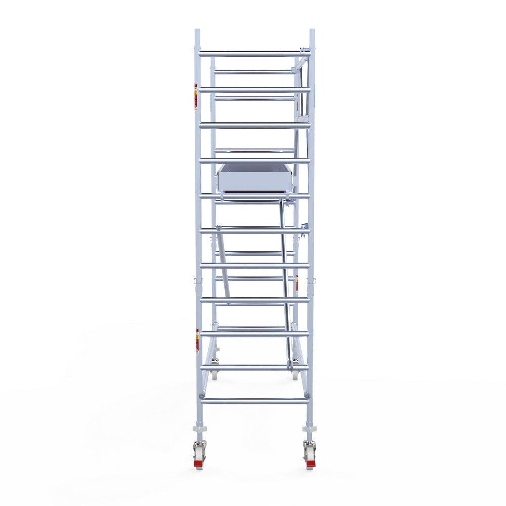 Unsere Rollgerüste sind in verschiedenen Breiten erhältlich, typischerweise 75 cm, 90 cm und 135 cm, abhängig vom jeweiligen Modell und der Produktlinie (semi-professionell oder professionell). Die 75 cm Breite ist ideal für beengte Räume, während 135 cm maximale Arbeitsfläche bietet.
