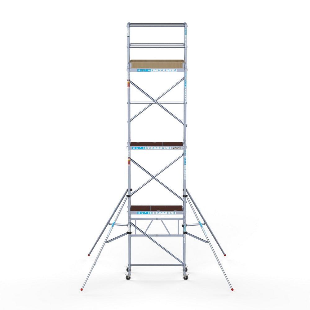 Unsere Rollgerüste sind in verschiedenen Breiten erhältlich, typischerweise 75 cm, 90 cm und 135 cm, abhängig vom jeweiligen Modell und der Produktlinie (semi-professionell oder professionell). Die 75 cm Breite ist ideal für beengte Räume, während 135 cm maximale Arbeitsfläche bietet.