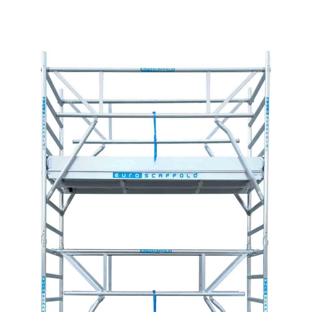 To improve safety, since January 1, 2018 it is mandatory to install edge protection when erecting scaffolds before stepping onto a platform. Installing a safety guardrail is the solution! A safety guardrail must be installed at the front and back of a scaffold. This front guardrail from Euroscaffold fits any professional rolling scaffold with a tube thickness of 50 mm and a platform length of 190 cm. The aluminum guardrail is light and foldable, making it easy to transport. You can hang work materials on the standard safety guardrail, so you no longer have to bend down. With this guardrail you meet the applicable safety requirements for professional scaffold use.