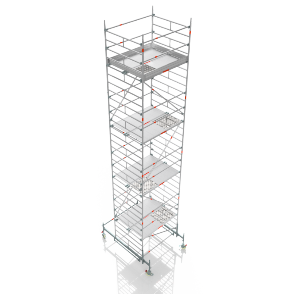 Durch robuste Aluminiumrahmen, rutschfeste Arbeitsplattformen und ein zuverlässiges Stecksystem lassen sich die Gerüste schnell und werkzeuglos aufbauen, sicher bewegen und flexibel an jede Baustellensituation anpassen.