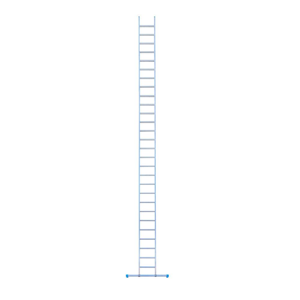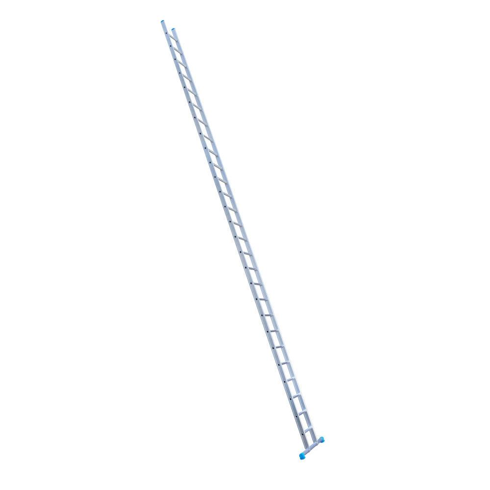Échelle inclinée droite Eurostairs avec 28 échelons de 4 cm de large dotés d'un profil antidérapant. L'échelle en aluminium mesure 7,25 mètres de long et est équipée de capuchons en caoutchouc antidérapants. Grâce à son faible poids de 18,9 kg, l'échelle est confortable à utiliser et facile à déplacer. L' échelle simple peut être placée sur une façade et est idéale pour les travaux de peinture et l'accès à une toiture. Les échelles Eurostairs sont certifiées selon la norme européenne EN131 et conviennent aussi bien aux bricoleurs qu'aux professionnels.