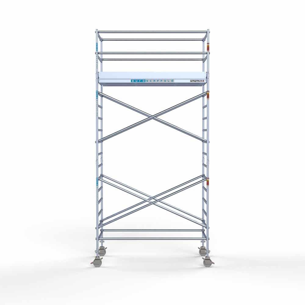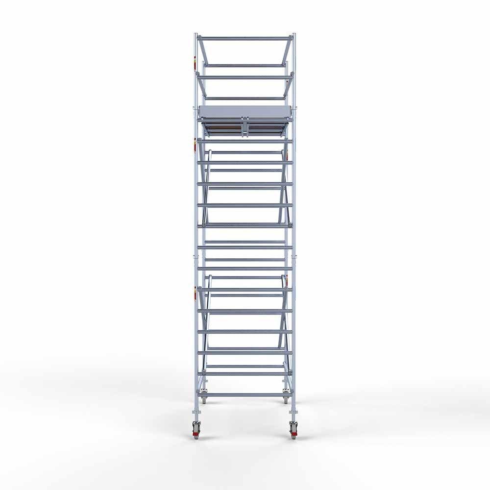 Unsere Rollgerüste sind in verschiedenen Breiten erhältlich, typischerweise 75 cm, 90 cm und 135 cm, abhängig vom jeweiligen Modell und der Produktlinie (semi-professionell oder professionell). Die 75 cm Breite ist ideal für beengte Räume, während 135 cm maximale Arbeitsfläche bietet.