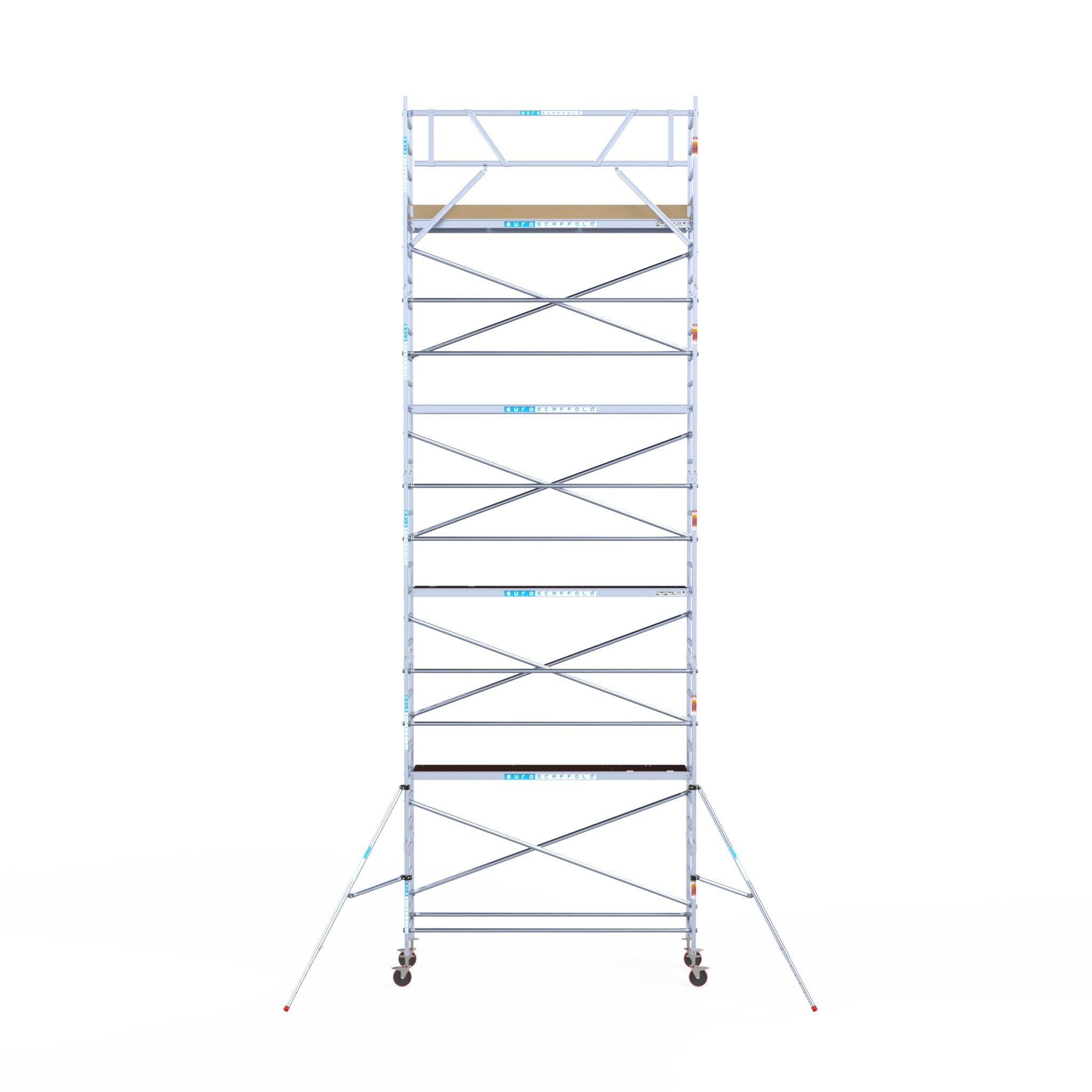 Unsere Rollgerüste sind in verschiedenen Breiten erhältlich, typischerweise 75 cm, 90 cm und 135 cm, abhängig vom jeweiligen Modell und der Produktlinie (semi-professionell oder professionell). Die 75 cm Breite ist ideal für beengte Räume, während 135 cm maximale Arbeitsfläche bietet.