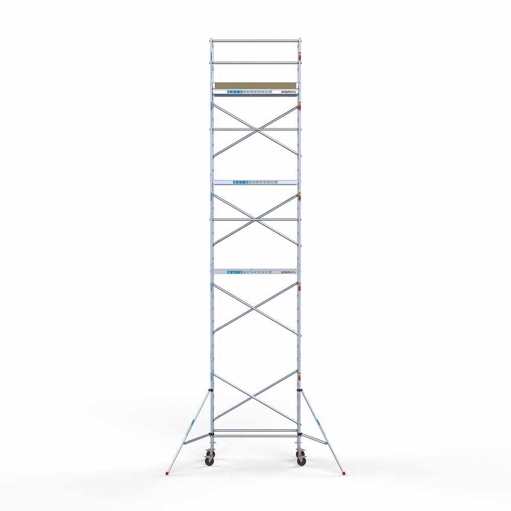 L'échafaudage fourni a une hauteur de travail de 10,2 mètres. Un échafaudage de 10 mètres est idéal pour les entreprises d'installation, les peintres et autres professionnels. Il répond à toutes les exigences de sécurité et est donc certifié TÜV. D'une largeur de 75 cm, il est idéal pour les allées et les chemins étroits. Sa longueur de 190 cm permet à plusieurs personnes de travailler sur la terrasse ou, par exemple, de travailler simultanément sur de grandes surfaces sans avoir à le déplacer.