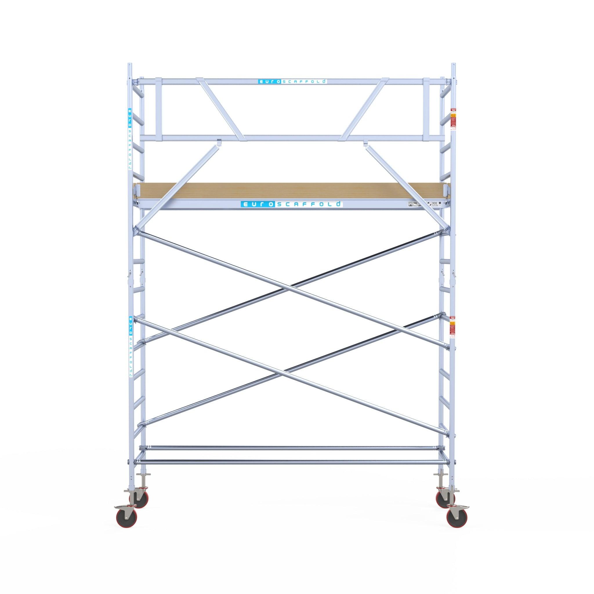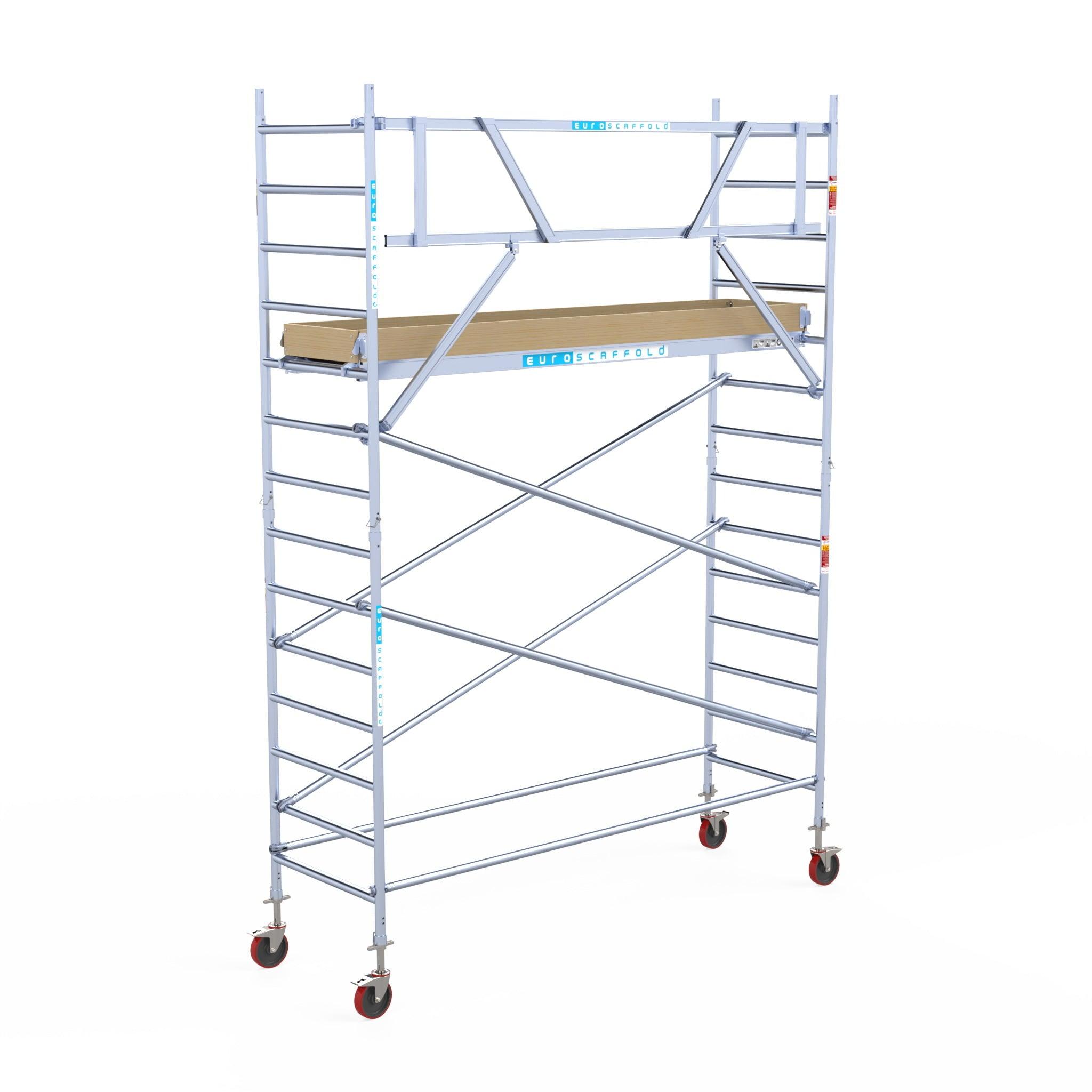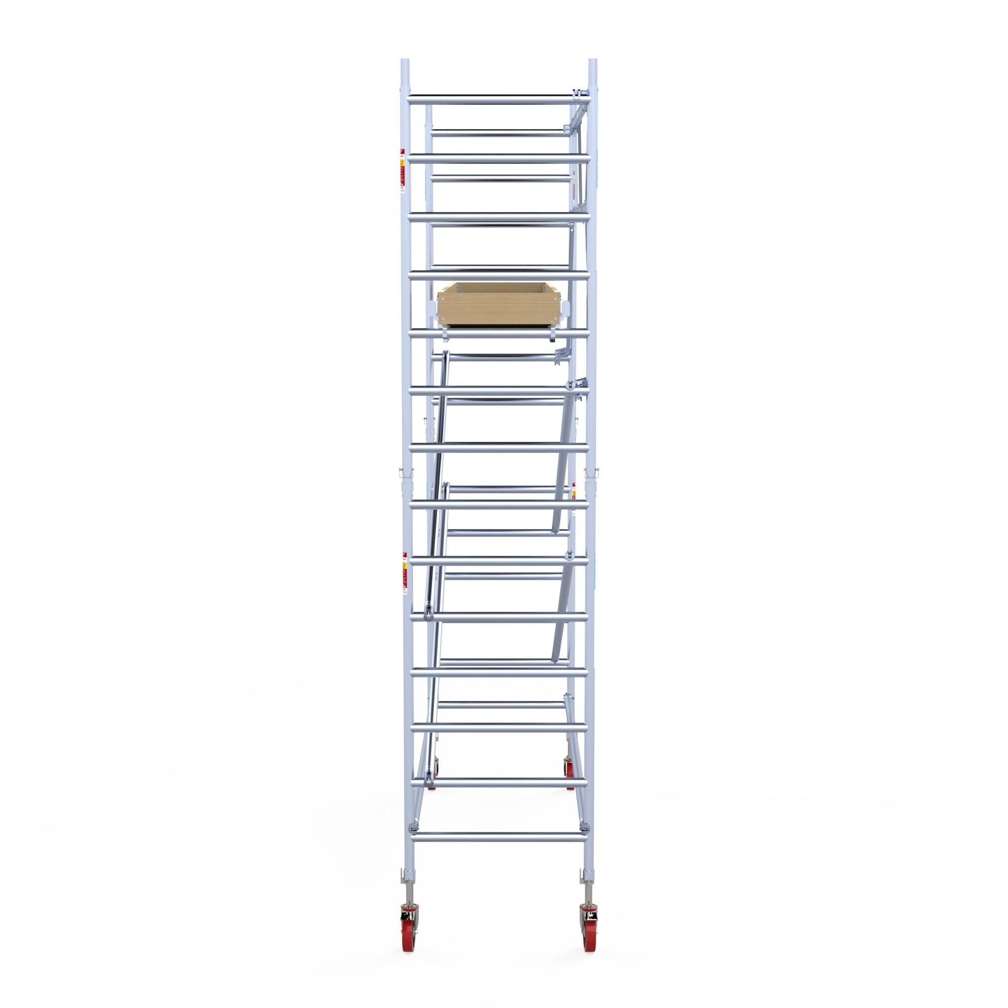 Unsere Rollgerüste sind in verschiedenen Breiten erhältlich, typischerweise 75 cm, 90 cm und 135 cm, abhängig vom jeweiligen Modell und der Produktlinie (semi-professionell oder professionell). Die 75 cm Breite ist ideal für beengte Räume, während 135 cm maximale Arbeitsfläche bietet.