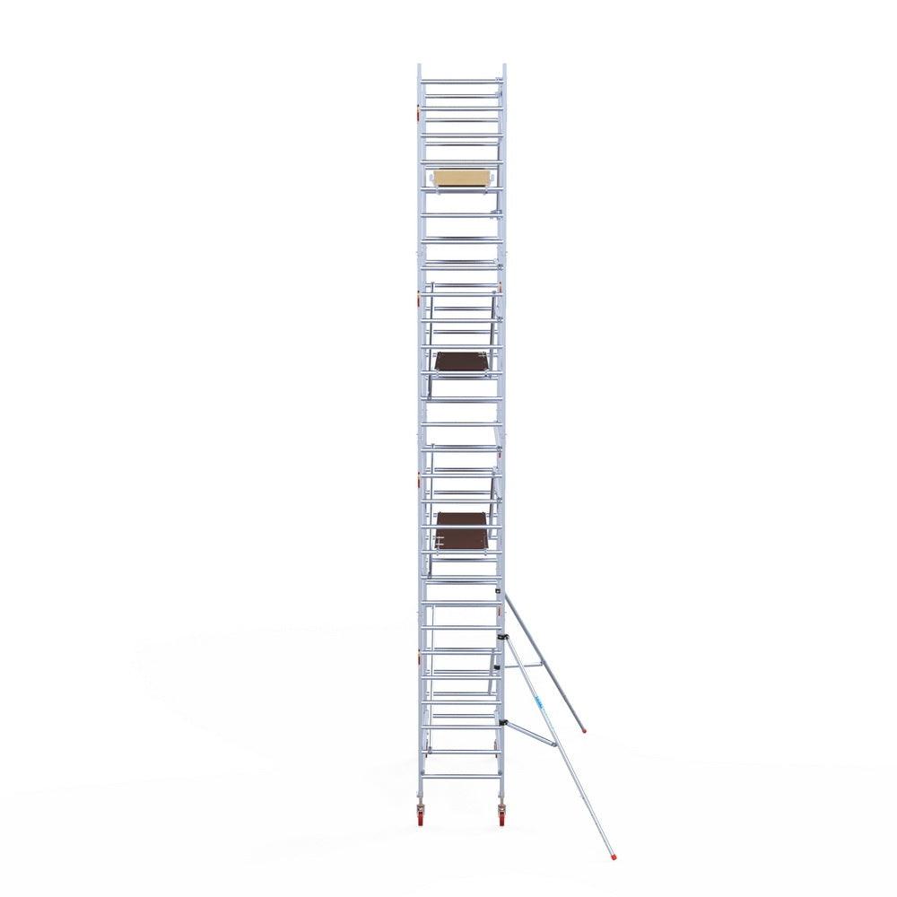 Echafaudage roulant Euroscaffold Basic 90x250 hauteur de travail 9,2m plateforme carbone contre façade