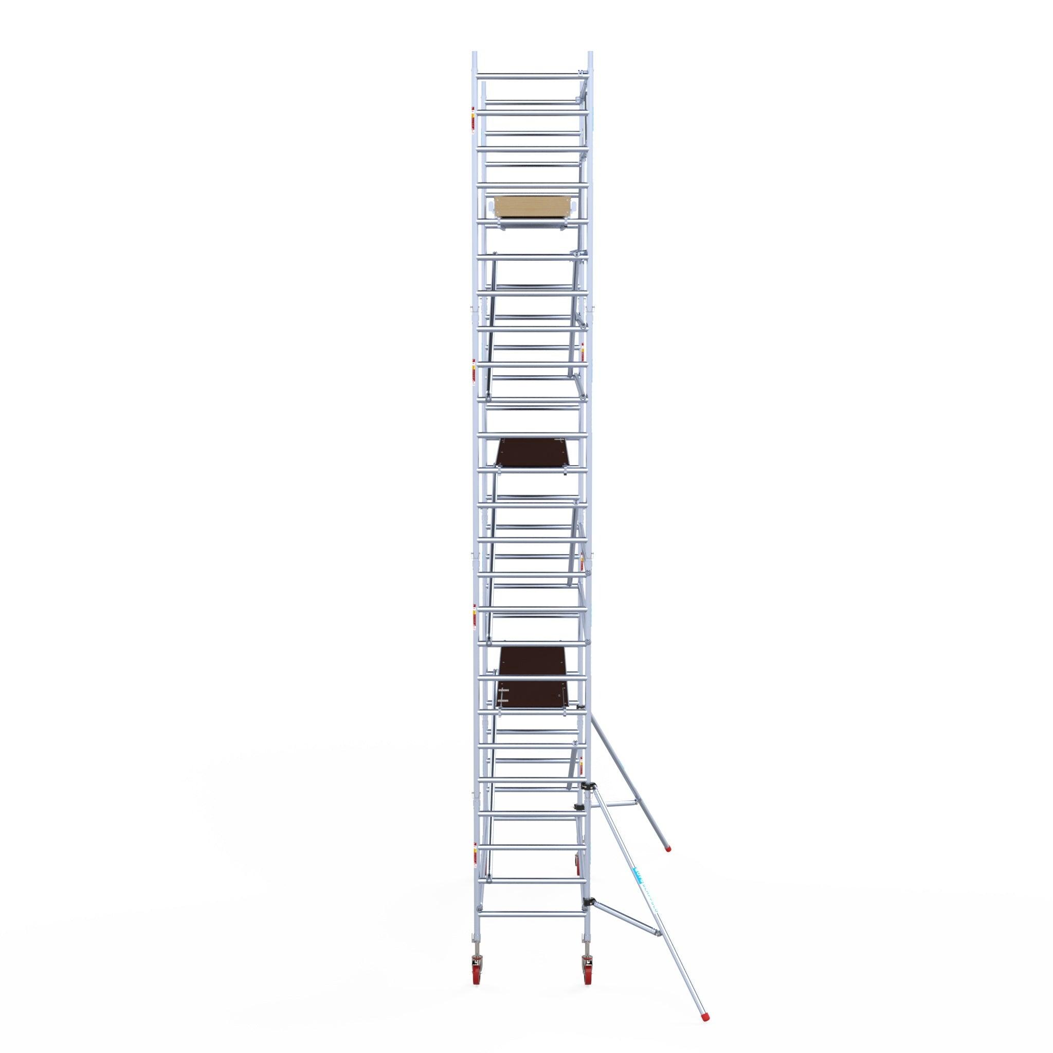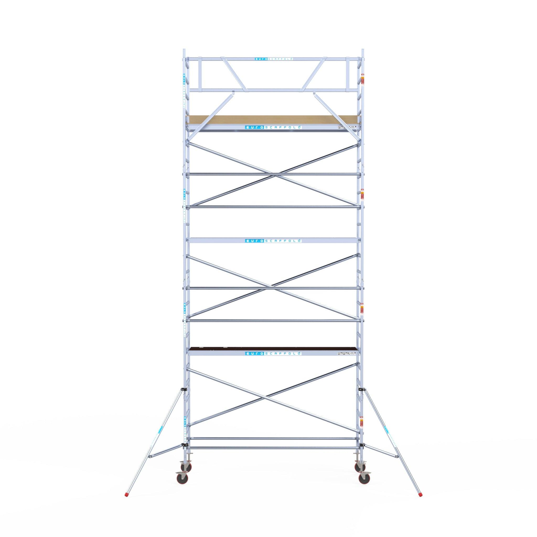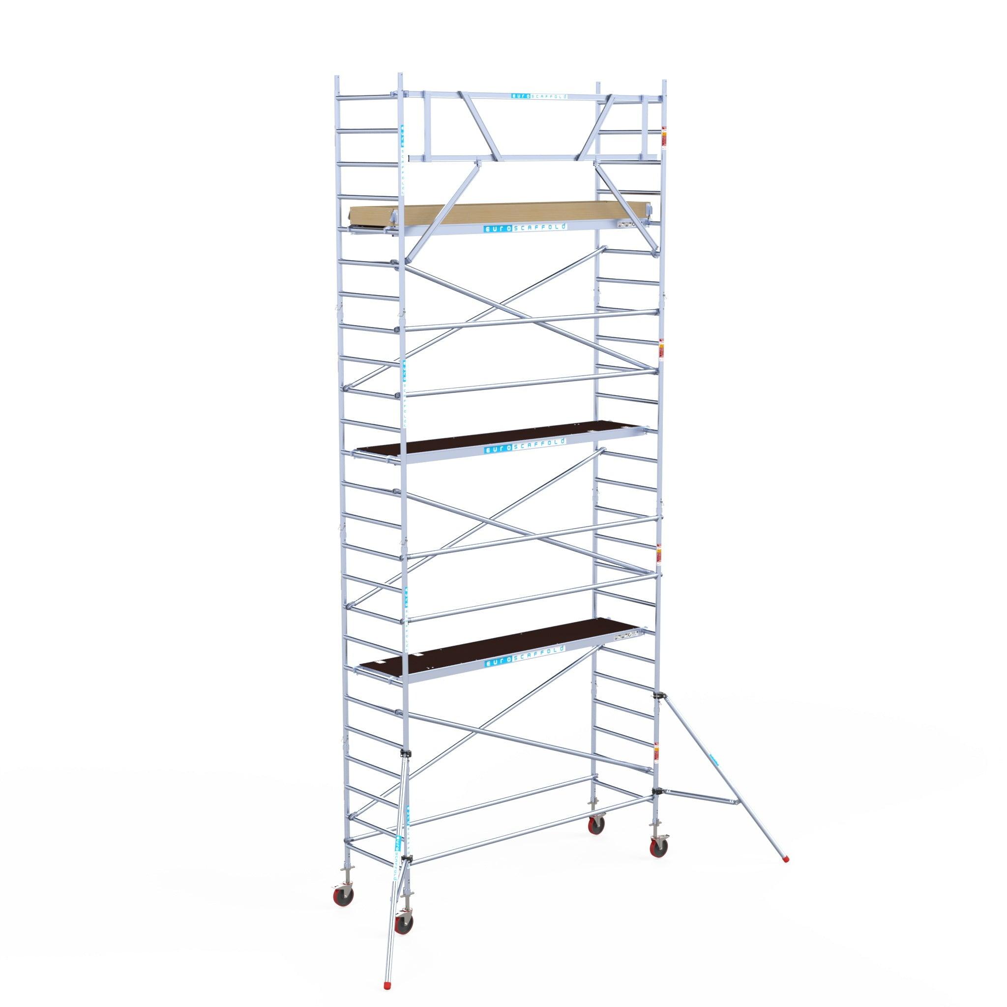 Echafaudage roulant Euroscaffold Basic 90x305 hauteur de travail 8,2m plateforme carbone contre façade