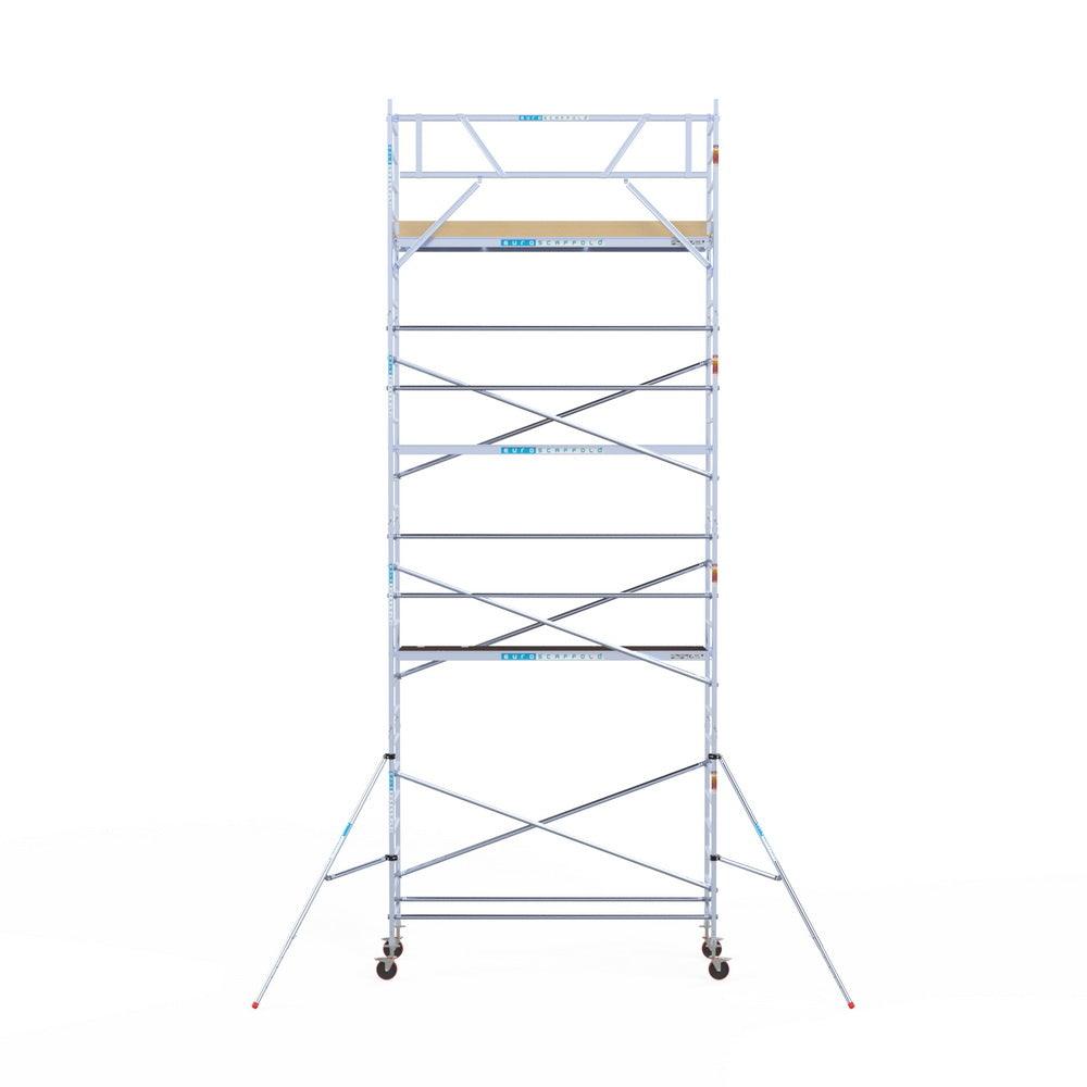 Echafaudage roulant Euroscaffold Basic 90x305 hauteur de travail 9,2m plateforme carbone contre façade