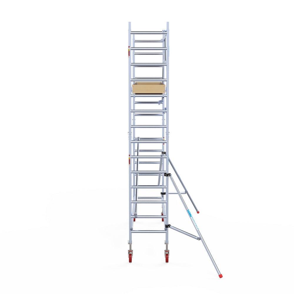 Echafaudage roulant Euroscaffold Basic 75x305 hauteur de travail 5,2m plateforme carbone contre façade