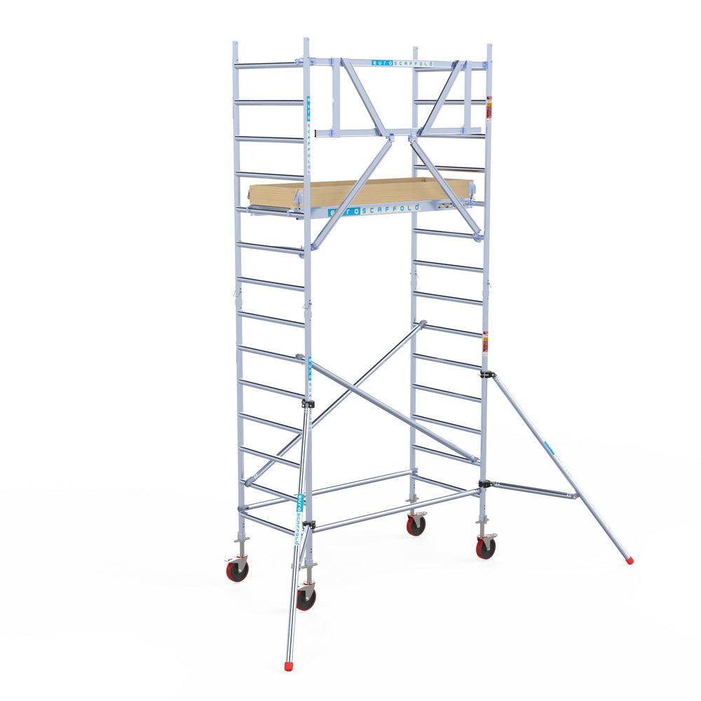 Echafaudage roulant Euroscaffold Basic 90x190 hauteur de travail 5,2m plateforme carbone contre façade