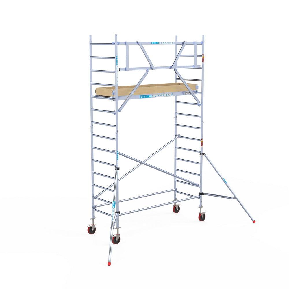Echafaudage roulant Euroscaffold Basic 90x250 hauteur de travail 5,2m plateforme carbone contre façade