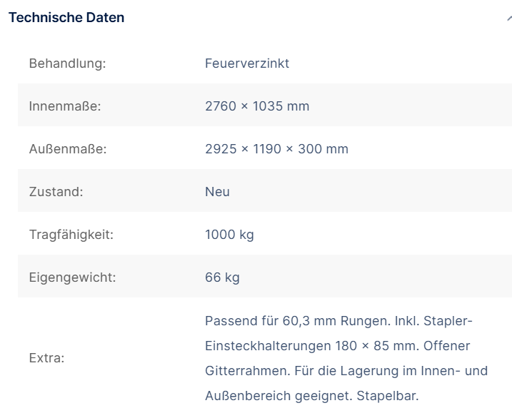 Für den Versand anderer Waren gilt der kostenlose Versand ab 2.500,00 € (Außer Gerüstanhänger)