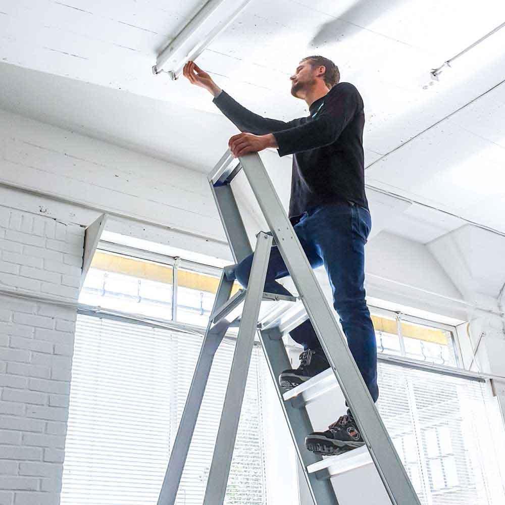 Wir bieten Höhenzugangstechnik für diverse Arbeitshöhen an, von niedrigen Höhen (z.B. mit Zimmergerüsten, Leitern oder Podesten) bis zu großen Höhen für Fassadenarbeiten mit unseren Rollgerüsten. Die maximal erreichbare Arbeitshöhe entnehmen Sie bitte der jeweiligen Produktbeschreibung. Viele Systeme sind modular erweiterbar.