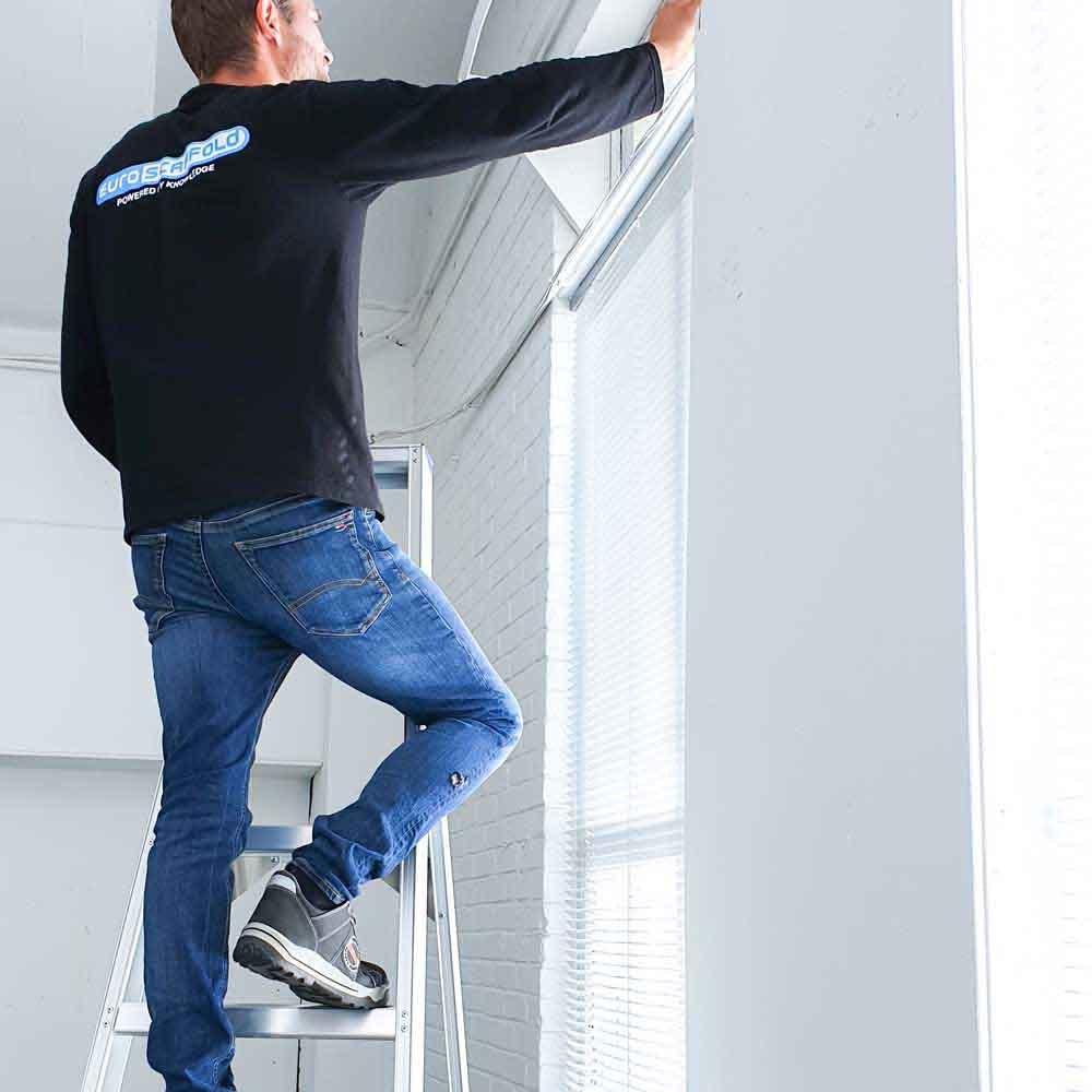 L'escabeau Eurostairs à huit marches est fabriqué en aluminium de haute qualité. Il répond aux exigences les plus strictes et convient à un usage professionnel.