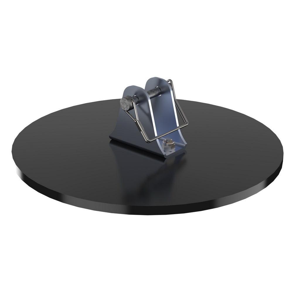 La plaque ronde est fixée au poteau et s'appuie contre la façade.
