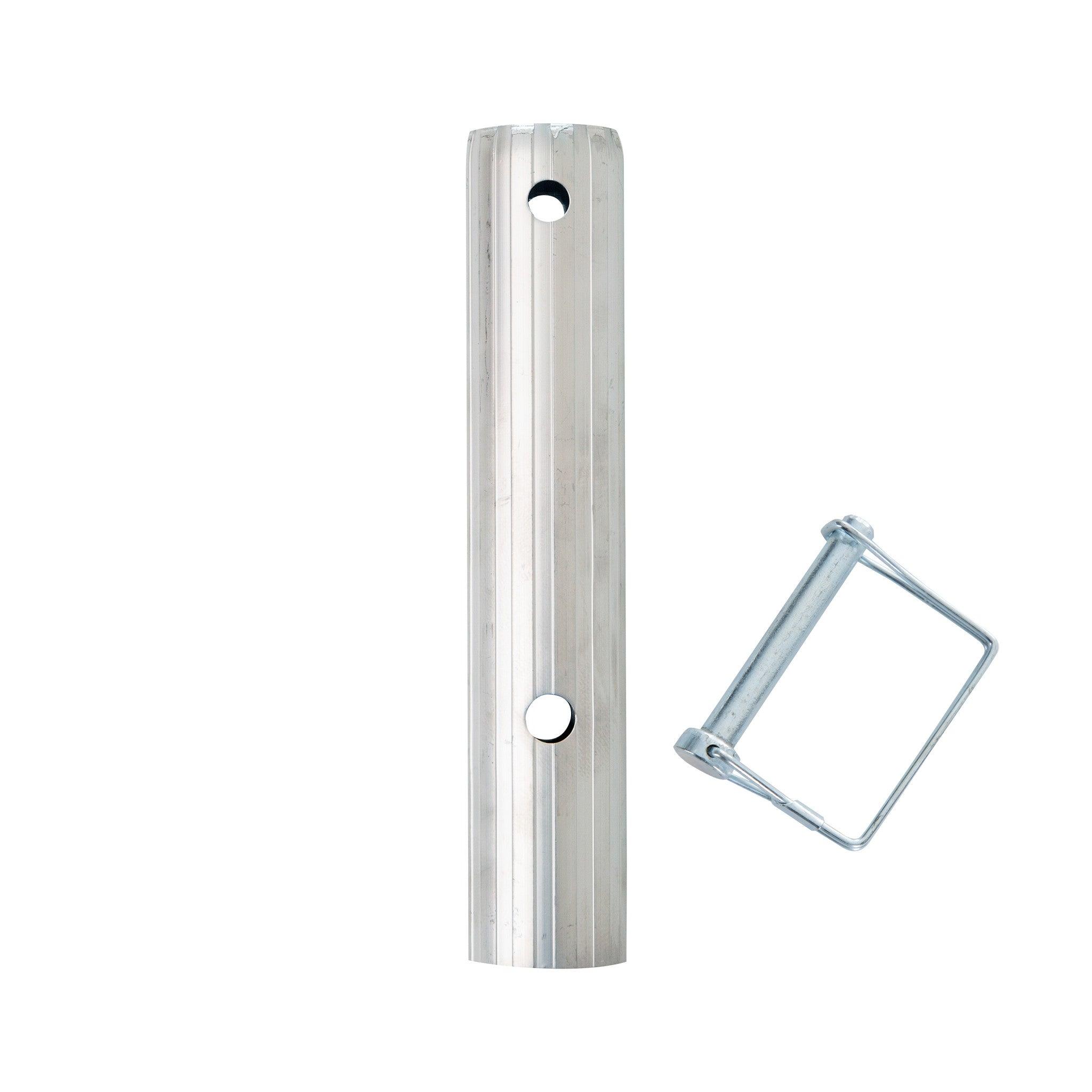 Un ensemble comprenant une pièce d'accouplement robuste pour un échafaudage de pièce, complet avec clip de sécurité. Le couplage vous permet d'agrandir un échafaudage de pièce en combinaison avec une extension. Vous pouvez par exemple étendre votre échafaudage avec une rallonge Euroscaffold de 1 mètre ou une rallonge de 2 mètres . Vous pouvez utiliser les raccords pour fixer le cadre de pièce et l'extension l'un à l'autre.