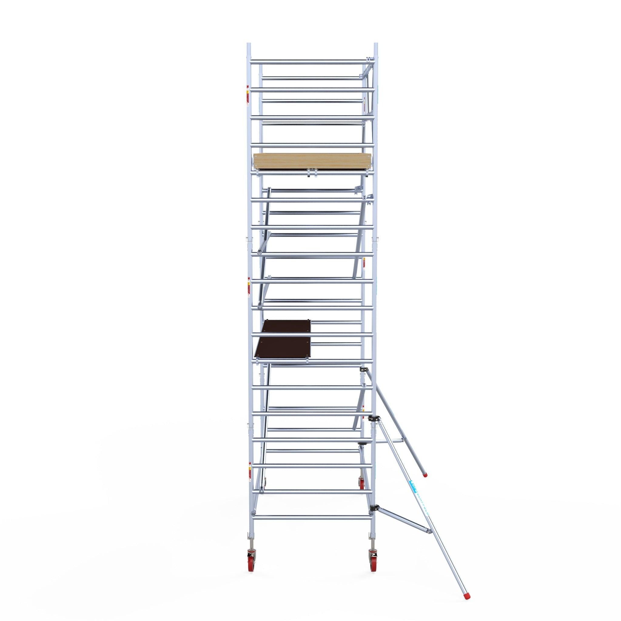 Echafaudage roulant Euroscaffold Basic 135x305 hauteur de travail 5,2m plateforme carbone contre façade