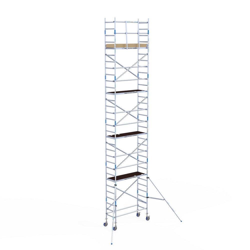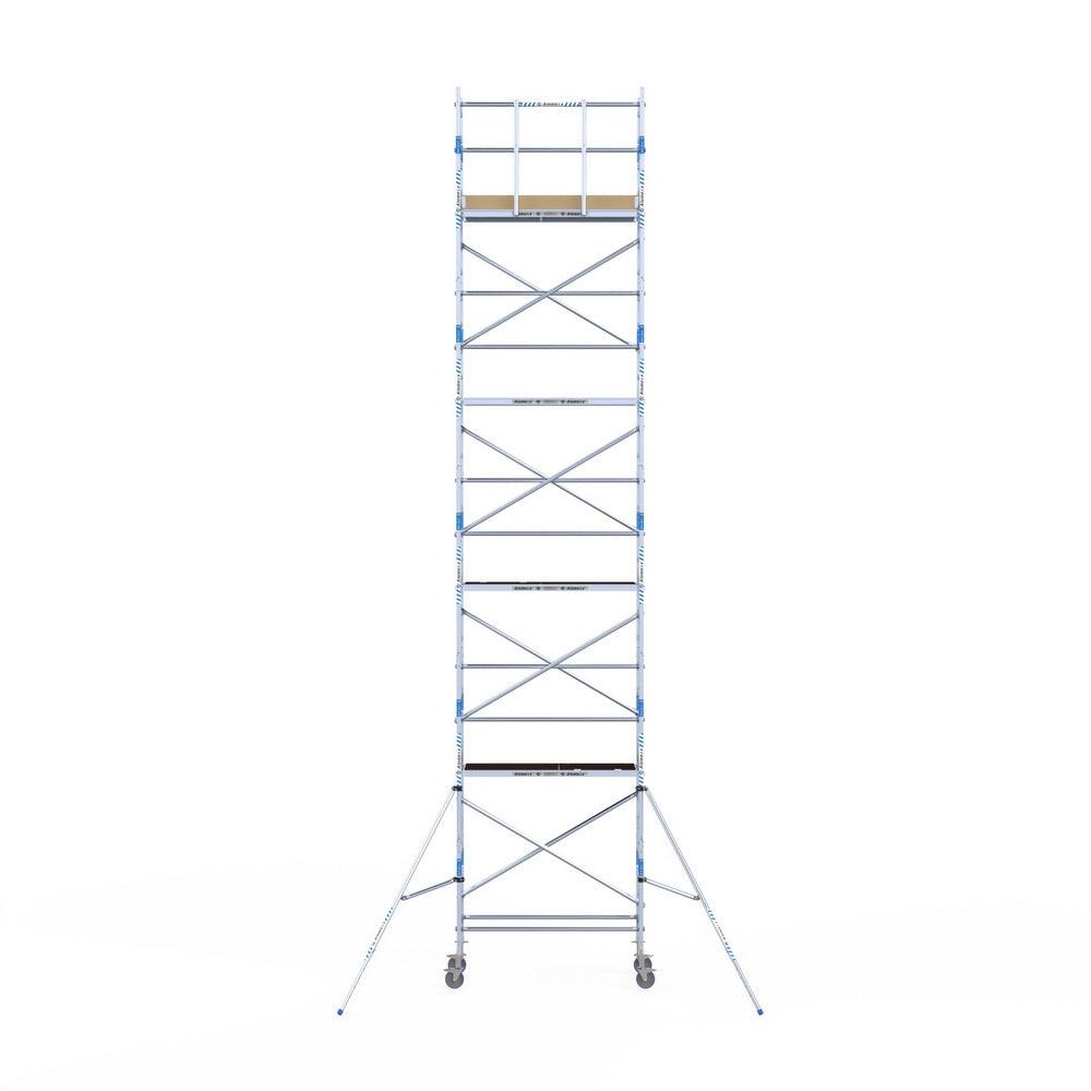 Unsere Rollgerüste sind in verschiedenen Breiten erhältlich, typischerweise 75 cm, 90 cm und 135 cm, abhängig vom jeweiligen Modell und der Produktlinie (semi-professionell oder professionell). Die 75 cm Breite ist ideal für beengte Räume, während 135 cm maximale Arbeitsfläche bietet.