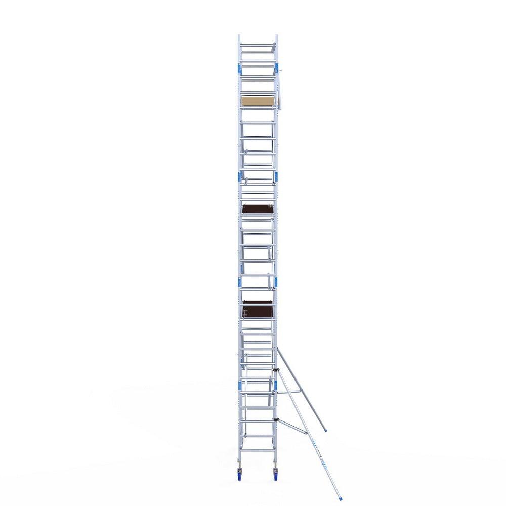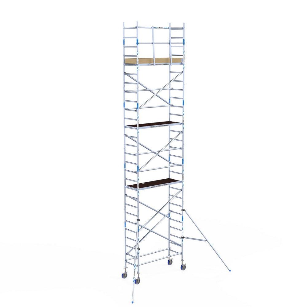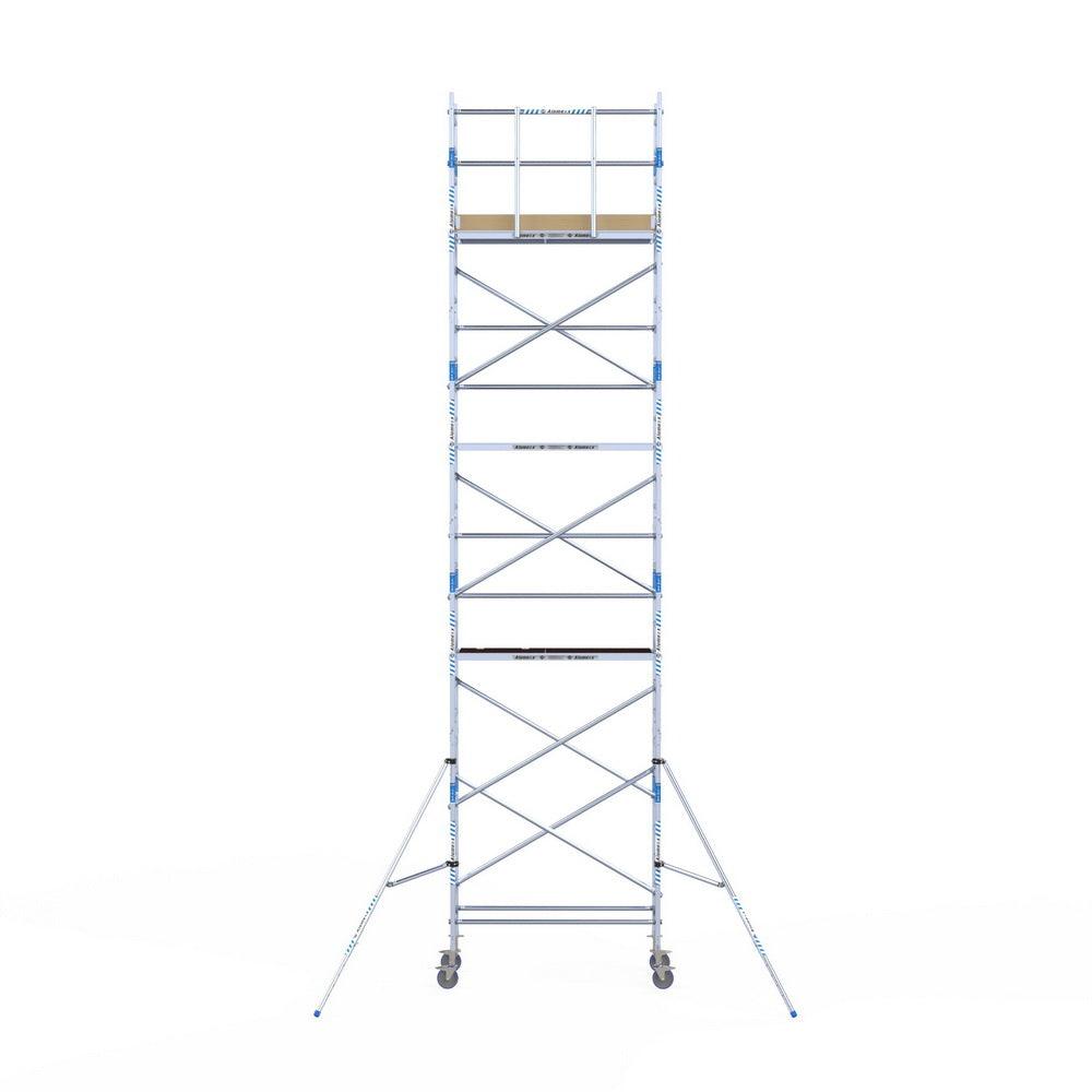 Unsere Rollgerüste sind in verschiedenen Breiten erhältlich, typischerweise 75 cm, 90 cm und 135 cm, abhängig vom jeweiligen Modell und der Produktlinie (semi-professionell oder professionell). Die 75 cm Breite ist ideal für beengte Räume, während 135 cm maximale Arbeitsfläche bietet.