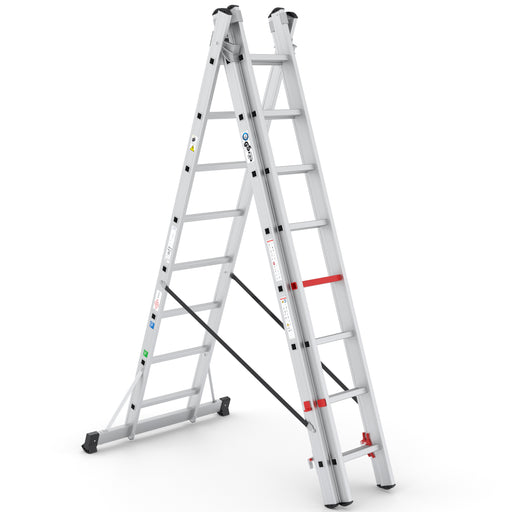 Multifunktionale Reform-Leiter von Eurostairs 3x9 Sprossen Dreiteilige, ausziehbare Leiter mit 3x9 Sprossen von 4 cm Breite. Die Leiter kann einfac...