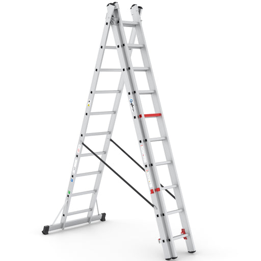 Eurostairs Mehrzweckleiter mit Giebelspulen 3x10 Stufen Diese dreiteilige Mehrzweck-Mehrzweckleiter von Eurostairs mit 3x10 Stufen ist ideal für Ar...