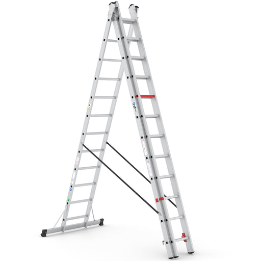Eurostairs Leiter mit Giebelsprossen 3x14 Sprossen Diese dreiteilige multifunktionale Schiebeleiter mit 3x14 Sprossen ist ideal für Arbeiten in unt...